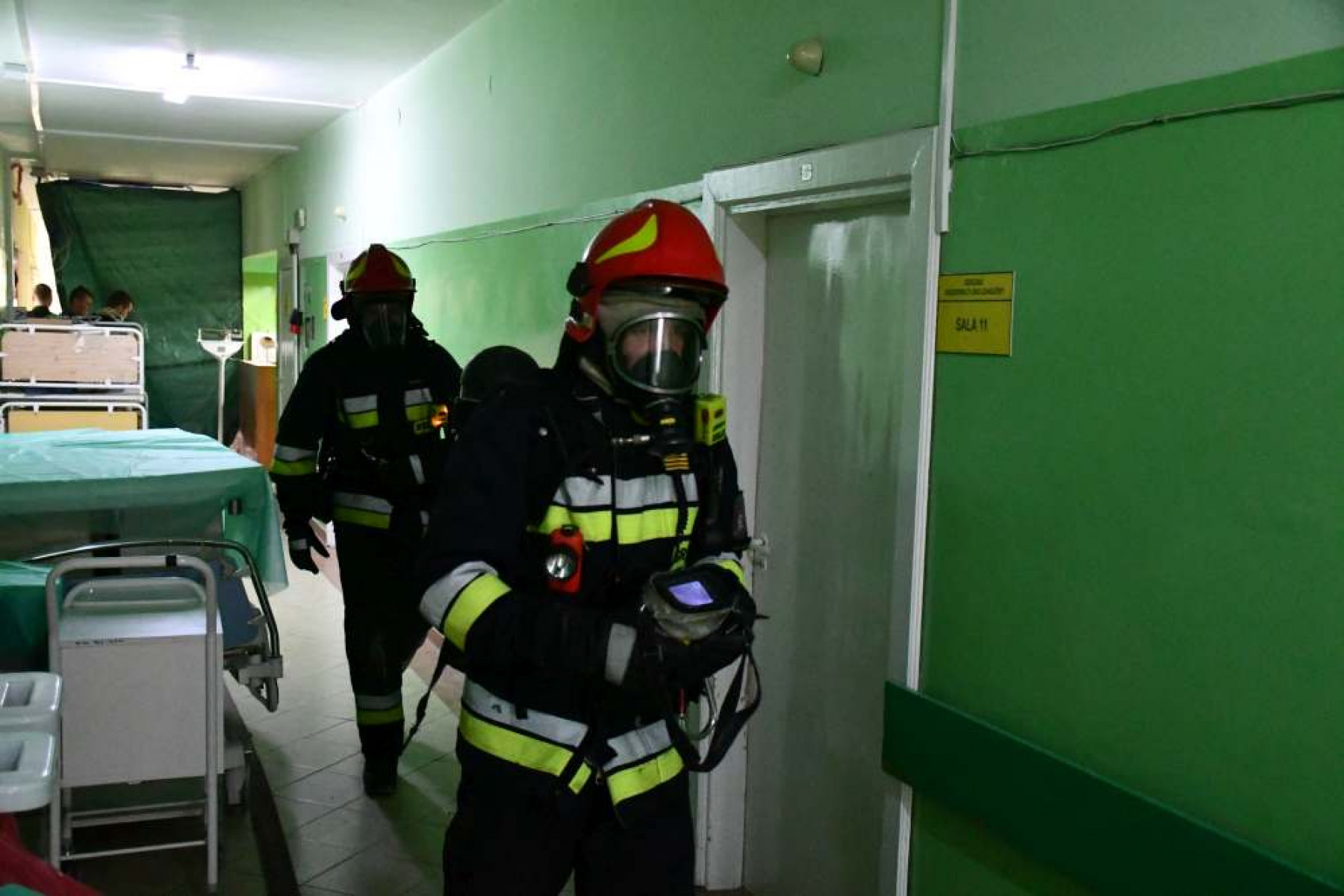 Rozwijający się pożar spowodował duże zadymienie na oddziale. Akcja gaśnicza podjęta przez personel przy użyciu podręcznego sprzętu gaśniczego nie przyniosła oczekiwanego rezultatu, dodatkowo troje z nich uległo poparzeniu i zatruciu toksycznymi produktami spalania. Pracownicy szpitala podjęli jednocześnie próbę ewakuacji pacjentów znajdujących się na oddziale. Niestety szybko rozwijający się pożar i duże zadymienie odcięły drogę ewakuacji co najmniej kilku pacjentom. Kierownik oddziału telefonicznie zaalarmował Państwową Straż Pożarną przekazując informację o zaistniałym zdarzeniu. Taką informację przekazał również zgodnie z Instrukcją Bezpieczeństwa Pożarowego dyrektorowi szpitala, który zarządził ewakuację bloku „F”…