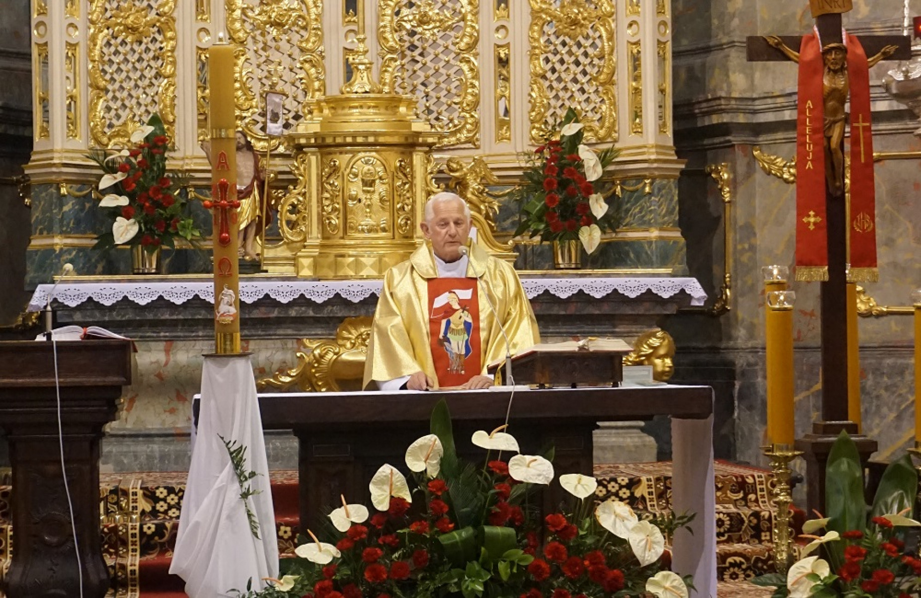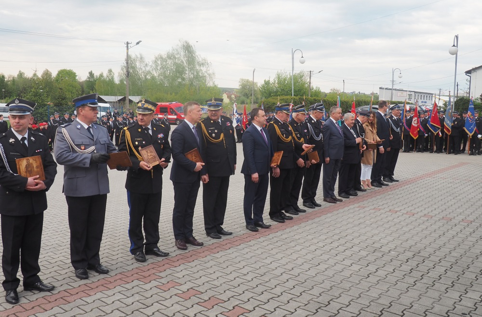 Uroczystości rozpoczęła Msza św. w intencji strażaków odprawiona w Bazylice Grobu Bożego w Miechowie, po zakończeniu której strażacy zwartym szykiem przy dźwiękach orkiestr dętych „Sygnał” z Miechowa i „Tempo” z Charsznicy przemaszerowali na plac zewnętrzny Komendy Powiatowej PSP w Miechowie.