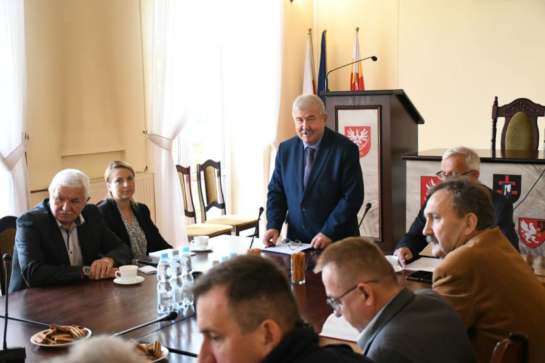Starosta Miechowski Jacek Kobyłka otwiera posiedzenie kryzysowe służb w sprawie przygotowania do zimy