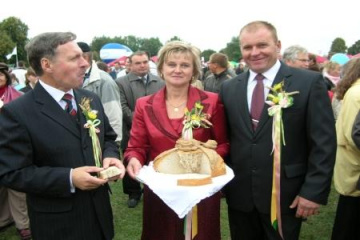 Poczęstunek publiczności chlebem dożynkowym cd. |