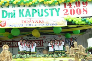 (...) Przygotowali je wspólnie Starostwo Powiatowe w Miechowie i Urząd Gminy Charsznica. Dzień zaczął sie od uroczystej mszy odprawionej w kościele w Chodowie, w czasie której zostały poświęcone chleb i wieńce dożynkowe. Następnie korowód gospodyń wiejskich i gości przy akompaniamencie muzyki orkiestr strażackich przeszedł na stadion LKS ,,Spartak". Na dożynkowej estradzie zebrali się goście: parlamentarzyści - senatorowie i posłowie, Jerzy Miller - Wojewoda Małopolski, członkowie Zarządu Województwa Małopolskiego, radni powiatu na czele z przewodniczącym Stanisławem Krawcem, burmistrz i wójtowie gmin powiatu miechowskiego, samorządowcy z gmin i powiatów ościennych, delegacje zaprzyjaźnionych samorządów z Ukrainy i Węgier, dyrektorzy firm rolniczych, szefowie służb mundurowych. Uczestników witał Jan Żebrak, wójt Gminy Charsznica. W trakcie obrzędów dożynkowych Mieczysław Bertek, Starosta Miechowski odebrał bochen chleba wypieczony z tegorocznych zbiorów od starostów dożynkowych - Tomasza Czerwika z gm. Charsznica i Małgorzaty Rosół z gm. Gołcza. Starosta obiecał dzielić chleb sprawiedliwie, po czym obdarował nim gości i mieszkańców. Delegacje Kół Gospodyń Wiejskich z poszczególnych gmin obśpiewały swoje wieńce dożynkowe. Kolejnym punktem programu była koronacja nowej Kapuścianej Pary Królewskiej A.D. 2008 - Zofii Krawiec ze Swojczan i Jana Micyka z Chodowa. Wójt Charsznicy przypomniał, że - ,,kapusta jest produktem sztandarowym, zielonym złotem gminy". - W części artystycznej wystąpiły zespoły szkolne i Kapela Ludowa ,,Lasowiacy" z Miechowa. Gwiazdą wieczoru był popularny zespół ,,Maanam". Święto zakończył pokaz ogni sztucznych. Niezależnie od imprez centralnych na sąsiadujących poletkach doświadczalnych miały miejsce prezentacje i instruktaże firm nasiennych, związane szczególnie z uprawą różnych gatunków kapust. Patronat medialny nad niedzielnymi imprezami sprawowały Telewizja i Radio Kraków oraz "Dziennik Polski". Niedzielne święto było też okazją dla starszych mieszkanek gminy Charsznica do zarejestrowania się na bezpłatne badania mammmograficzne. Akcje promocyjną prowadziły wolontariuszki ze szkół ponadgimnazjalnych powiatu miechowskiego.