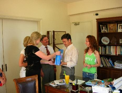 (...) w środkowo-zachodniej części kraju, w ramach wizyty roboczej związanej z realizacją unijnego programu edukacyjnego ,,Sokrates Comenius" (wicedyrektor Zespołu jest szkolnym koordynatorem programu). W akcji tej uczestniczą także placówki oświatowe z Belgii i Włoch, a wspólnym motywem działań jest ,,polityka rolna jako miejsce spotkań narodów Europy". Beneficjenci programu mają za zadanie promować produkt regionalny. Zarząd Powiatu Miechowskiego i starostwo jako instytucję stowarzyszoną w powyższym programie reprezentował starosta Mieczysław Bertek. Zgodnie z ideą programu nauczyciele miechowskiej szkoły i osoby zaangażowane w program spotkali się z partnerską szkołą rolniczą TEE Vonitsa, która popularyzuje swój przysmak - ser feta. Rozmawiano z dyrekcją szkoły i nauczycielami oraz poznano bazę edukacyjną greckiej placówki. W trakcie spotkań wymieniono materiały i doświadczenia zgromadzone w tym projekcie przez obie strony. Ponieważ program ,,Sokrates Comenius" zmierza do końca, planowana jest wspólna prezentacja multimedialna nt. produktów regionalnych będących wizytówkami ww. nacji. Polaków przyjął również burmistrz Vonitsa - Epameinas Mikakmis. Rozmawiano o dalszej współpracy między szkołami, w tym o wymianie grup uczniowskich. Rozważano możliwości organizacji na gruncie greckim praktyk dla uczniów miechowskiego ZS Nr 2 w zawodach: technik hotelarstwa i organizator usług gastronomicznych. Starosta spotkał się także z miejscowymi przedsiębiorcami, by rozmawiać o możliwościach współpracy gospodarczej, m.in. w zakresie produkcji rolnej. Greccy gospodarze zostali zaproszeni do złożenia wizyty w Miechowie i powiecie miechowskim.