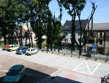 (...) Przy okazji wybudowano brakujący a konieczny podjazd dla osób niepełnosprawnych. O tych pracach pisaliśmy obszernie w odrębnych relacjach. W ramach porządkowania otoczenia budynku urzędu dokonano jeszcze jednej innowacji. W północnej części parkingu wygospodarowano dodatkowych 12 miejsc parkingowych, w tym 1 przeznaczone dla ,,pojazdu samochodowego uprawnionej osoby niepełnosprawnej o obniżonej sprawności ruchowej". Miejsca postojowe wyłożono estetyczną kostką brukową na pow. 70 m kw. Nie zapomniano o odwodnieniu terenu. Prace o wartości 10.800 zł wykonał Zakład Ogólnobudowlany i Instalacji Elektrycznych z Orłowa - Stanisław Kozieł. Powiększony parking ucieszy licznie odwiedzających urząd interesantów, szczególnie w dniach obrad sesji Rady Powiatu i posiedzeń innych gremiów, kiedy przed starostwem robi się tłoczno od samochodów.