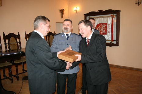 (...) Komendanta Powiatowego Policji w Miechowie. W obecności policjantów z miejscowej jednostki, samorządowców powiatu i gmin oraz zaproszonych gości byłego komendanta żegnał jego następca nadkom. Bogusław Słupczyński. W uroczystości wziął udział mł. insp. Marek Woźniczka - zastępca Komendanta Wojewódzkiego Policji w Krakowie. Przypomniano przebieg służby zawodowej odchodzącego szefa miechowskiej Policji. W wystąpieniach podkreślano zasługi byłego komendanta w poprawie bezpieczeństwa i porządku publicznego w mieście i powiecie miechowskim. Byłemu komendantowi wręczono listy gratulacyjne. Były życzenia, gratulacje i słowa uznania. Od samorządowców na czele ze starostą i pracowników KPP w Miechowie mł. insp. Leszek Cichocki otrzymał na pamiątkę repliki starej broni. Dziękując za pożegnanie ww. przypomniał, że dobre wyniki pracy, które miechowska Policja osiągnęła za jego kierownictwa nie byłyby możliwe bez życzliwości i dobrej współpracy ze strony lokalnych samorządów, zakładów pracy i powiatowej społeczności.