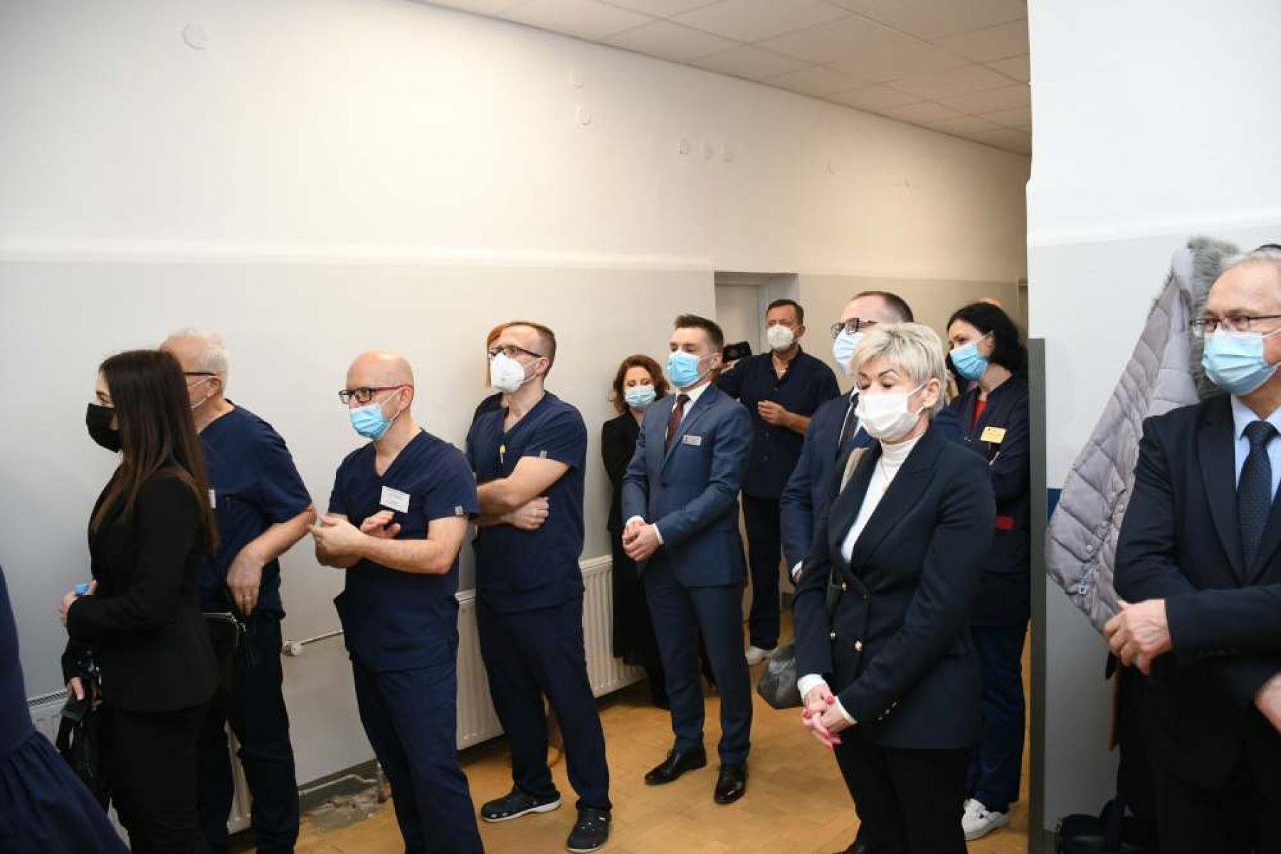 Pracownicy, ordynatorzy, lekarze na otwarciu rezonansu w miechowskim szpitalu