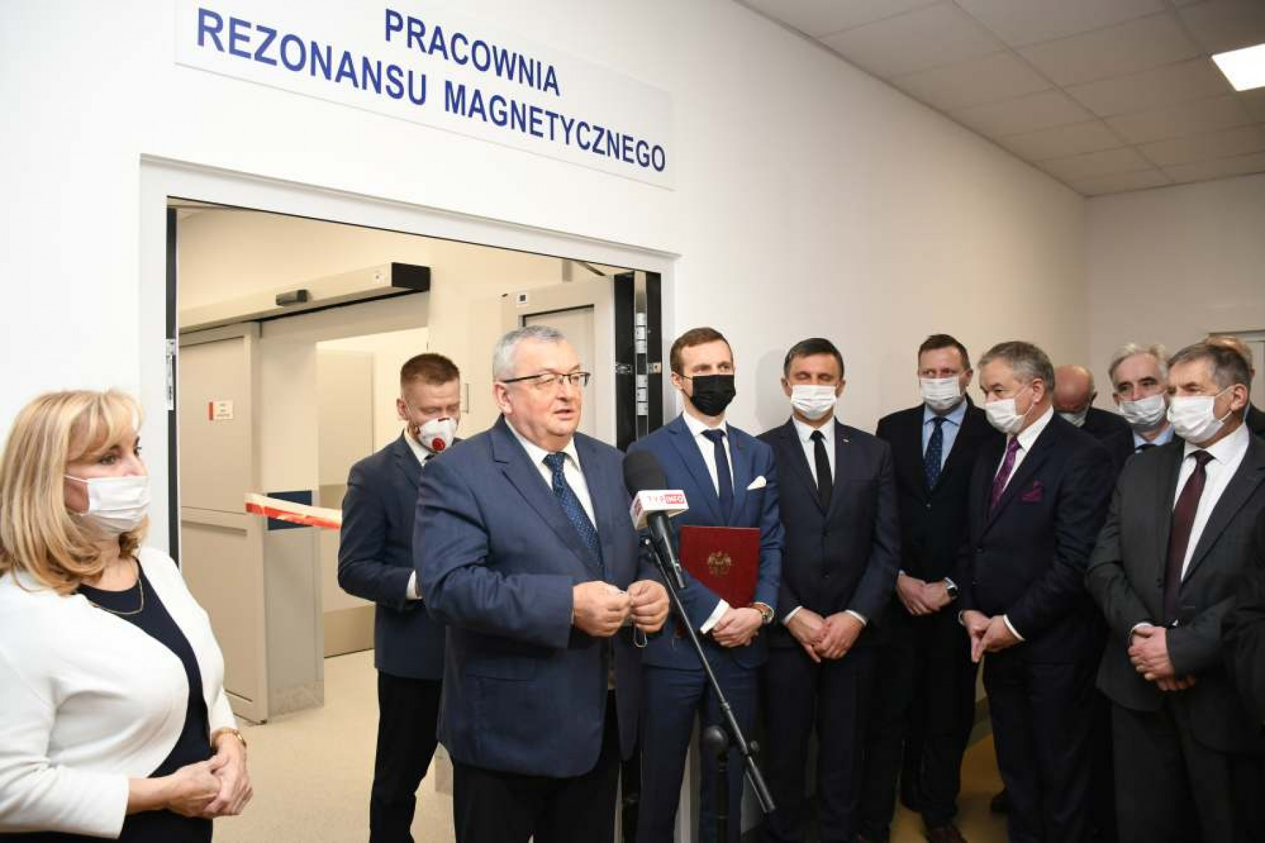 Minister Andrzej Adamczyk gratuluje pracowni rezonansu w Szpitalu św. Anny w Miechowie