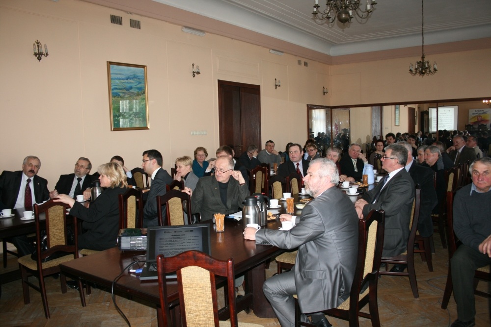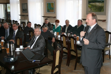 W Miechowie gościa witał starosta Marian Gamrat. Uczestnicy spotkania – burmistrz, wójtowie, radni, przedsiębiorcy i szefowie zakładów pracy zapoznali się z prezentacją ilustrującą dotychczasowe wdrażanie w Małopolsce popularnych programów operacyjnych dofinansowywanych przez Unię Europejską: Małopolskiego Regionalnego Programu Operacyjnego i Programu Rozwoju Obszarów Wiejskich. – Ideą obu programów jest maksymalne wykorzystanie pozyskanych środków przez samorządy, tak, aby ani złotówka nie powróciła do województwa – przypomniał Stanisław Sorys. W obu przypadkach członek Zarządu Województwa przedstawił statystyki – liczby projektów, wartość dofinansowania i aktywność beneficjentów. Prezentacja uwzględniała także oba programy w kontekście poziomu alokacji na tle innych województw i wykaz planowanych konkursów do ogłoszenia. Zebrani dowiedzieli się m.in., że dotychczas w ramach MRPO na lata 2007-13 ogłoszono 51 konkursów. W ich trakcie wybrano 1.874 projekty, które dofinansowano kwotą ponad 4 mld 364 mln zł. Podpisano 1.715 umów o wartości dofinansowania ponad 4 mld 118 mln zł. Do chwili obecnej wypłacono w ramach zawartych umów ponad 2 mld zł. Do zagospodarowania pozostało jeszcze ponad 117.487 tys. zł (w ramach osi I, III-VII). Pod względem wydatków kwalifikowanych we wnioskach o płatności MRPO Województwo Małopolskie zajęło IV miejsce w kraju. Członek Zarządu Województwa dodał, że w kategorii aktywności beneficjentów powiat miechowski zajął 8. miejsce w Małopolsce (934zł/mieszkańca), ale z kolei tylko 7 przedsiębiorców z tutejszej ziemi uzyskało unijne dofinansowanie. Mówiąc z kolei o PROW na lata 2007-13 Stanisław Sorys podał charakterystykę osi tematycznych, tj. odnowa i rozwój wsi, Leader, gospodarka rolniczymi zasobami wodnymi, usługi dla ludności wiejskiej, scalanie gruntów. W aplikowaniu o środki na rozwój podstawowych usług dla gospodarki i ludności wiejskiej powiat miechowski usytuował się na 3. miejscu w województwie. Na koniec prezentacji przedstawiciel Zarządu Województwa mówił o Krajowej Rezerwie Wykonania, na koncie której zgromadzono kwotę 1.331.304 euro. M.in. z tych środków będzie przebudowywana droga relacji Wolbrom – Miechów - do granicy z woj. świętokrzyskim. Uczestnicy zostali również zapoznani z listą zadań z Małopolski przewidzianych do dofinansowania dzięki dodatkowym środkom w ramach KRW. Spotkanie z ze Stanisławem Sorysem zakończyła dyskusja.