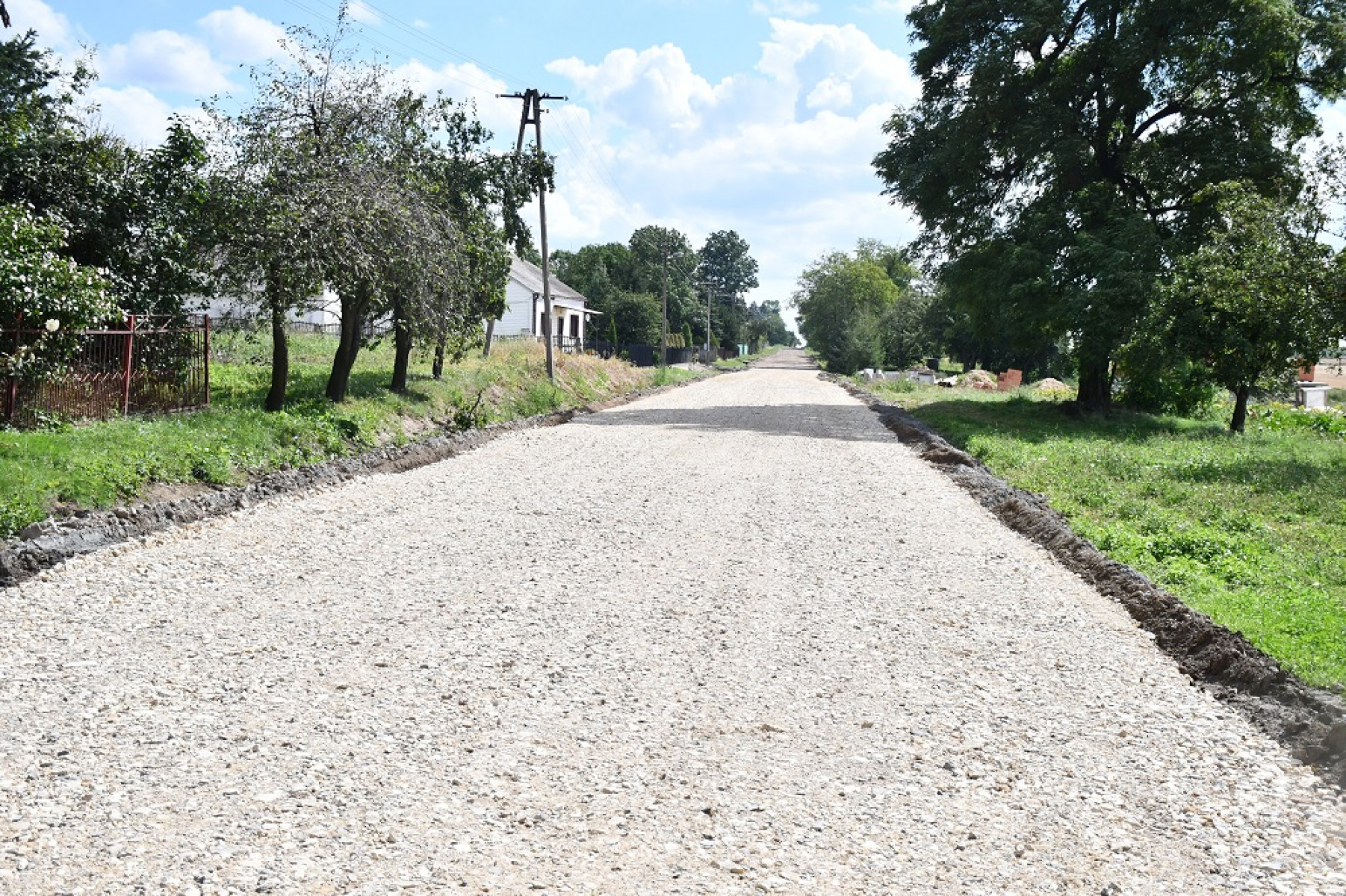 - wykonanie nowych warstw konstrukcyjnych wraz z poszerzeniem nawierzchni jezdni do szerokości 5,5m z obustronnymi poboczami o szerokości 0,75m powierzchniowo utrwalonymi,
