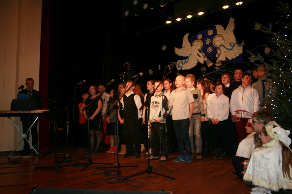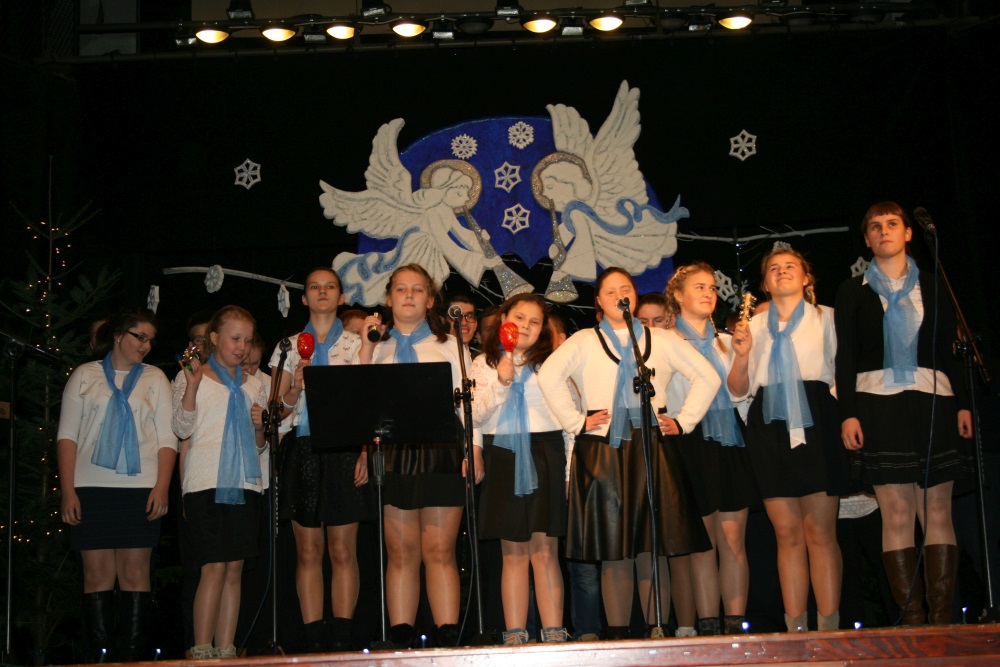 W sali kina Gryf w Miechowie uczestników imprezy witała nowa dyrektor Ośrodka Dorota Regucka. Starosta Marian Gamrat zaznaczył, że przegląd jet sprawdzonym sposobem kultywowania wokalnych bożonarodzeniowych i noworocznych tradycji, a przy okazji miejscem integracji i wymiany doświadczeń uczniów i nauczycieli z kilku specjalistycznych ośrodków z Małopolski. Naczelnik miechowskiego oddziału Poczty Polskiej Jadwiga Zięba obdarowała dyrektorkę Ośrodka okolicznościową monetą z motywem kolędniczym i cyrkoniami, wyemitowaną w 2010r. przez Skarbnicę Narodową. Na przedświąteczne kolędowanie w tym roku zgłosiło się 6 ośrodków. Swoje umiejętności wokalne i interpretacyjne kolęd, pastorałek i pieśni świątecznych zaprezentowali wychowankowie z: Zespołu Szkół im. S.Wyspiańskiego z Waganowic, Warsztatów Terapii Zajęciowej „Szansa” z Podlesic, Polskiego Stowarzyszenia na Rzecz Osób z Niepełnosprawnością Intelektualną z Miechowa, Specjalnego Ośrodka Szkolno – Wychowawczego w Myślenicach, Specjalnego Ośrodka Szkolno – Wychowawczego Nr 1 w Krakowie i oczywiście ze Specjalnego Ośrodka Szkolno – Wychowawczego w Zagorzycach k/Miechowa. Występujące zespoły zadbały o akcenty świąteczne (stroje i rekwizyty). Zgromadzeni usłyszeli najpiękniejsze świąteczne melodie i mogli nucić je razem z wykonawcami. Występującym żywiołowo sekundowali opiekunowie, wychowawcy i rodzice. W trakcie koncertu pojawił się Mikołaj w towarzystwie Śnieżynki, którzy częstowali zgromadzonych słodyczami.