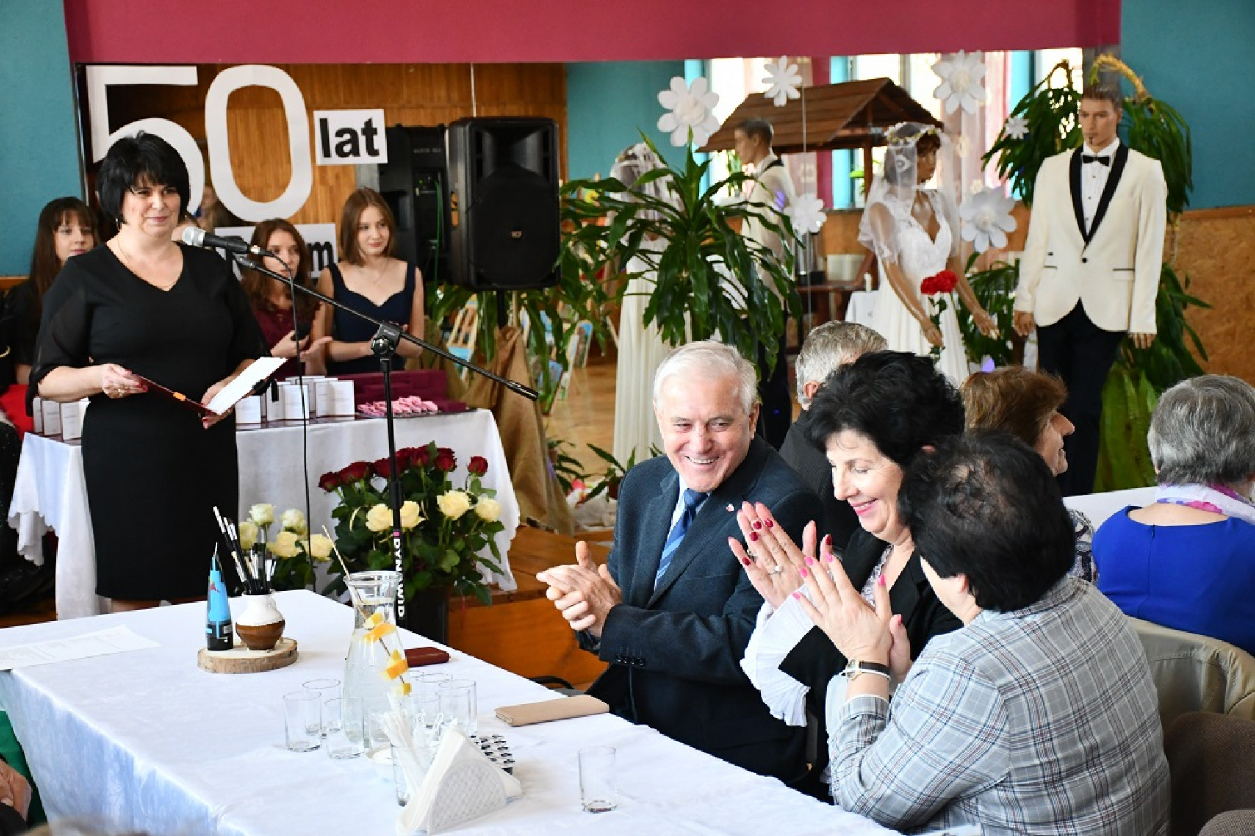 - W ciągu tych długich wspólnie przeżytych lat, na pewno było wiele dni radosnych i pięknych, były pewnie też smutne i przykre. Ale wszystkie razem związały Was jeszcze bardziej i potwierdziły słuszność decyzji sprzed pięćdziesięciu lat - mówiła do Jubilatów sekretarz Agnieszka Kucharz składając im życzenia z okazji 50. rocznicy pożycia.