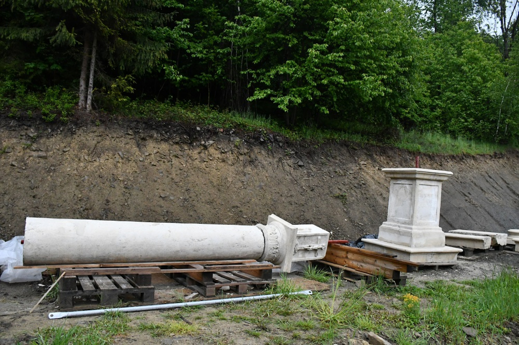 Elementy kapliczki z Mianocic podczas prac konserwatorskich