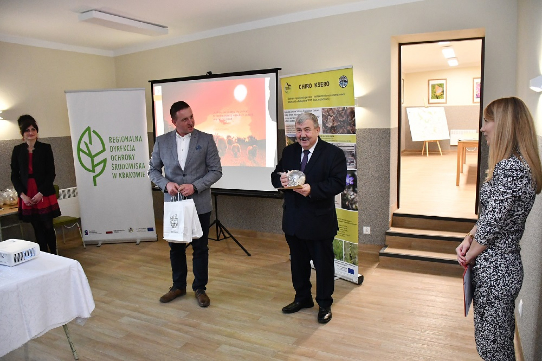 Starosta miechowski Jacek Kobyłka dziękował przedstawicielkom RDOŚ za dotychczasową owocną współpracę, która korzystnie wpływa nie tylko na ochronę naszego lokalnego środowiska, ale też skutecznie promuje ziemię miechowską. Gospodarz naszego powiatu dziękował również wypasającym na naszym terenie owce olkuskie, które nie tylko wzbogacają krajobraz, ale też dbają o unikalne na Miechowszczyźnie murawy kserotermiczne.