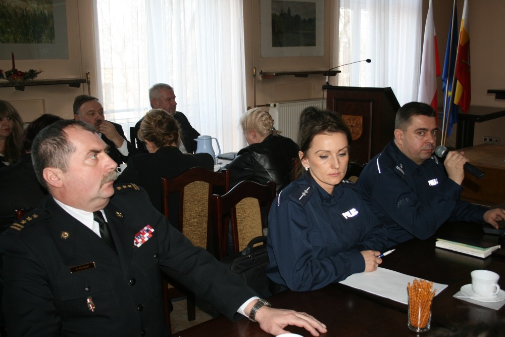 Mł. insp. Bogusław Słupczyński (KPP Miechów) poinformował, że miechowska komenda zyskała pozytywną ocenę roczną wystawioną przez Małopolskiego Komendanta Policji, co jest powodem do satysfakcji dla funkcjonariuszy i pracowników cywilnych. W miechowskiej jednostce odnotowano 25% spadek stwierdzonych przestępstw (878). Liczba wszystkich przestępstw na terenie powiatu zmniejszyła się o 285, co przełożyło się również na mniejszą liczbę osób podejrzanych, w tym nieletnich. Wykrywalność ogólna wyniosła 74,4%. W zakresie działania służby prewencyjnej w minionym roku miechowscy policjanci interweniowali 8865 razy. Ujawniono 5731 wykroczeń. Istotnym problemem jest bezpieczeństwo ruchu drogowego. Zatrzymano 182 nietrzeźwych kierujących (w 2012r. – 275). Na drogach wydarzyło się 46 wypadków i 249 kolizji, w których zginęło 7 osób. Komendant Policji oznajmił, że wiosną rozpocznie się długo oczekiwana budowa nowej komendy, która zdecydowanie poprawi standard pracy funkcjonariuszu i obsługi interesantów. Z kolei rzecznik KPP w Miechowie asp. Ewa Kądziołka informowała o prowadzonych przez jednostkę działaniach profilaktyczno – promocyjnych.