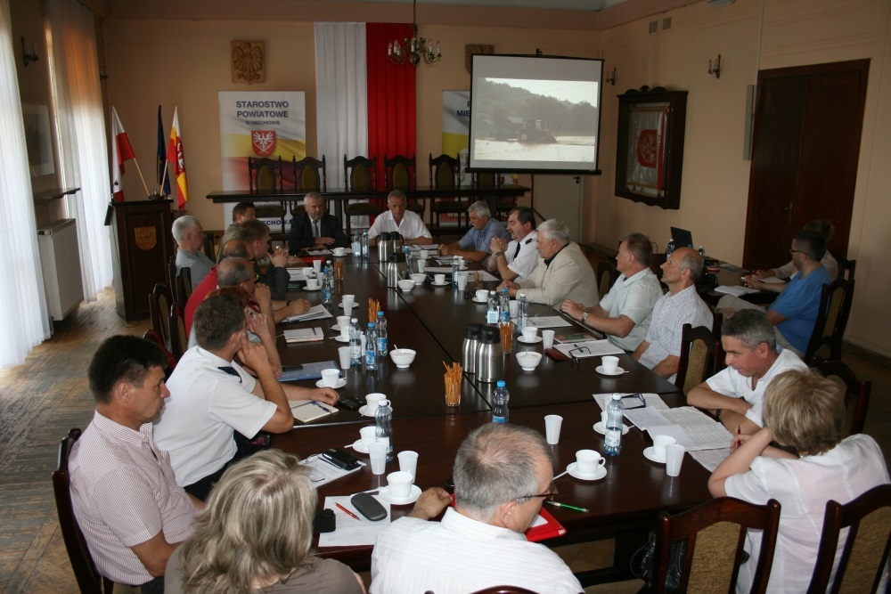(...) Zniszczone są domy i zabudowania gospodarcze, drogi i uprawy. Ważne, że w sytuacji zagrożenia sprawdzili się ludzie i przepływ informacji, co ostatecznie pozwoliło przeprowadzić sprawną pomoc dla zagrożonych i poszkodowanych mieszkańców. Nie było ofiar w ludziach – to główne, chociaż nie jedyne wnioski z posiedzenia Powiatowego Zespołu Zarządzania Kryzysowego, który zebrał się dla podsumowania skutków siły żywiołu, który trwałym piętnem odbił się na miechowskiej ziemi. Starosta Marian Gamrat podziękował osobom i instytucjom, które profesjonalnie przeprowadziły akcje ratunkowe, a społeczeństwu za spontaniczną, pomocną reakcję w obliczu nieszczęścia. W miechowskim starostwie spotkali się przedstawiciele KPPSP, OSP, Policji, Weterynarii, PINB i gminnych zespołów zarządzania kryzysowego, by zdać sprawę z działań ratowniczych, wymienić doświadczenia i wnioski.