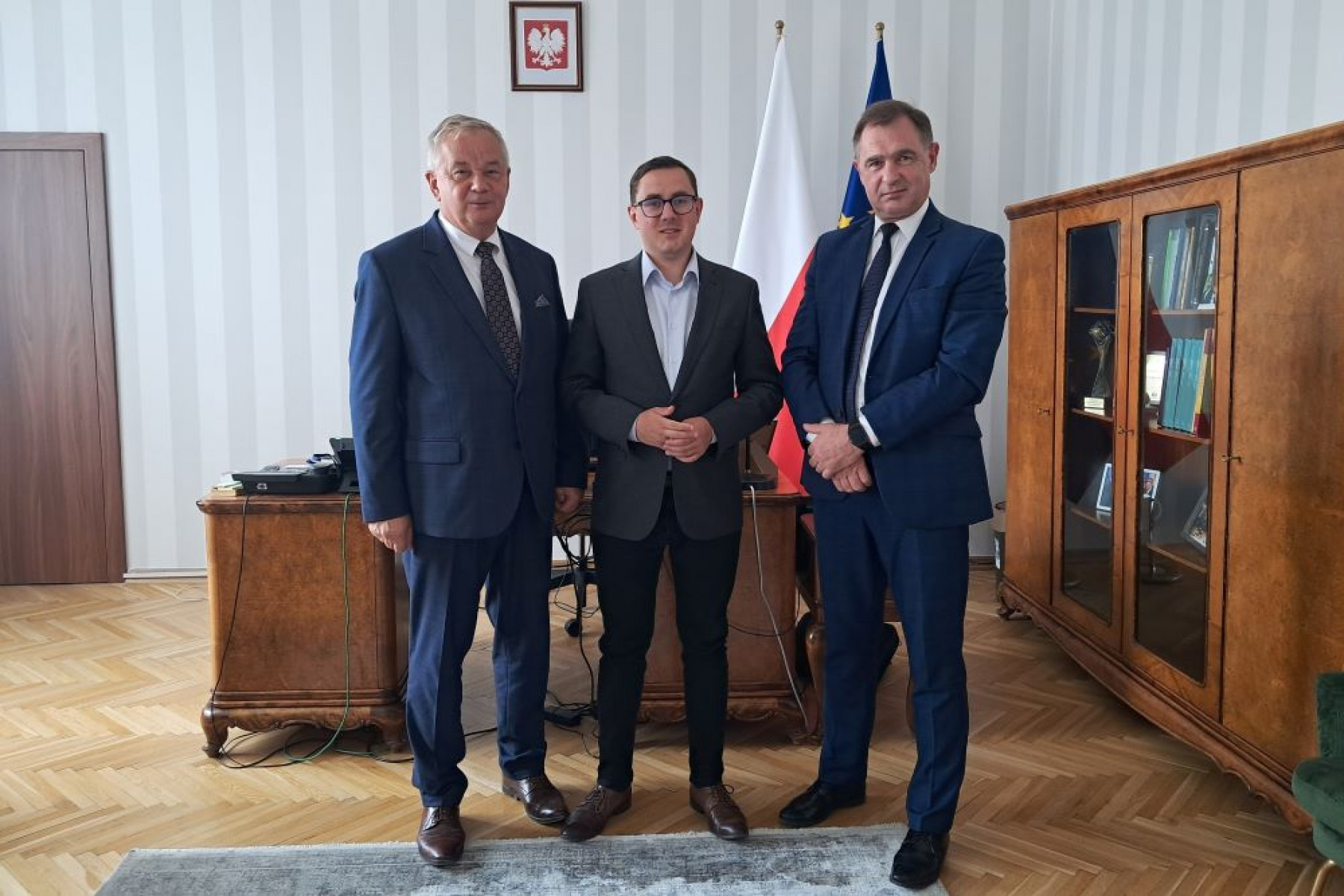 Starostowie Miechowscy z Wiceministrem Klimatu i Środowiska - Miłoszem Motyką.