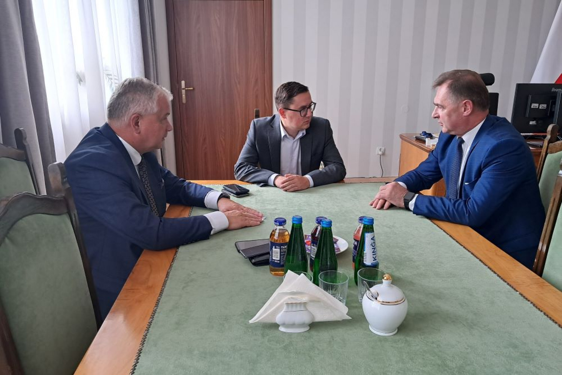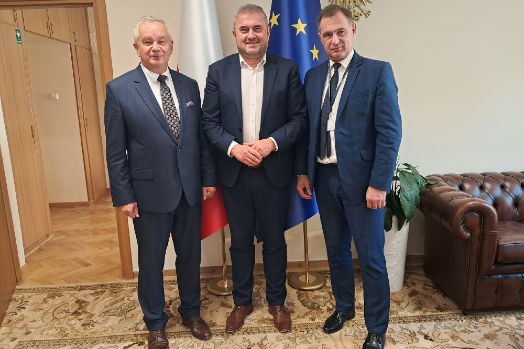 Następnie w Ministerstwie Klimatu i Środowiska z Wiceministrem - Miłoszem Motyką dyskutowano na temat możliwości pozyskiwania środków finansowych, w ramach programu OZE. Poruszono również kwestię realizację zadań inwestycyjnych z wykorzystaniem funduszu leśnego.