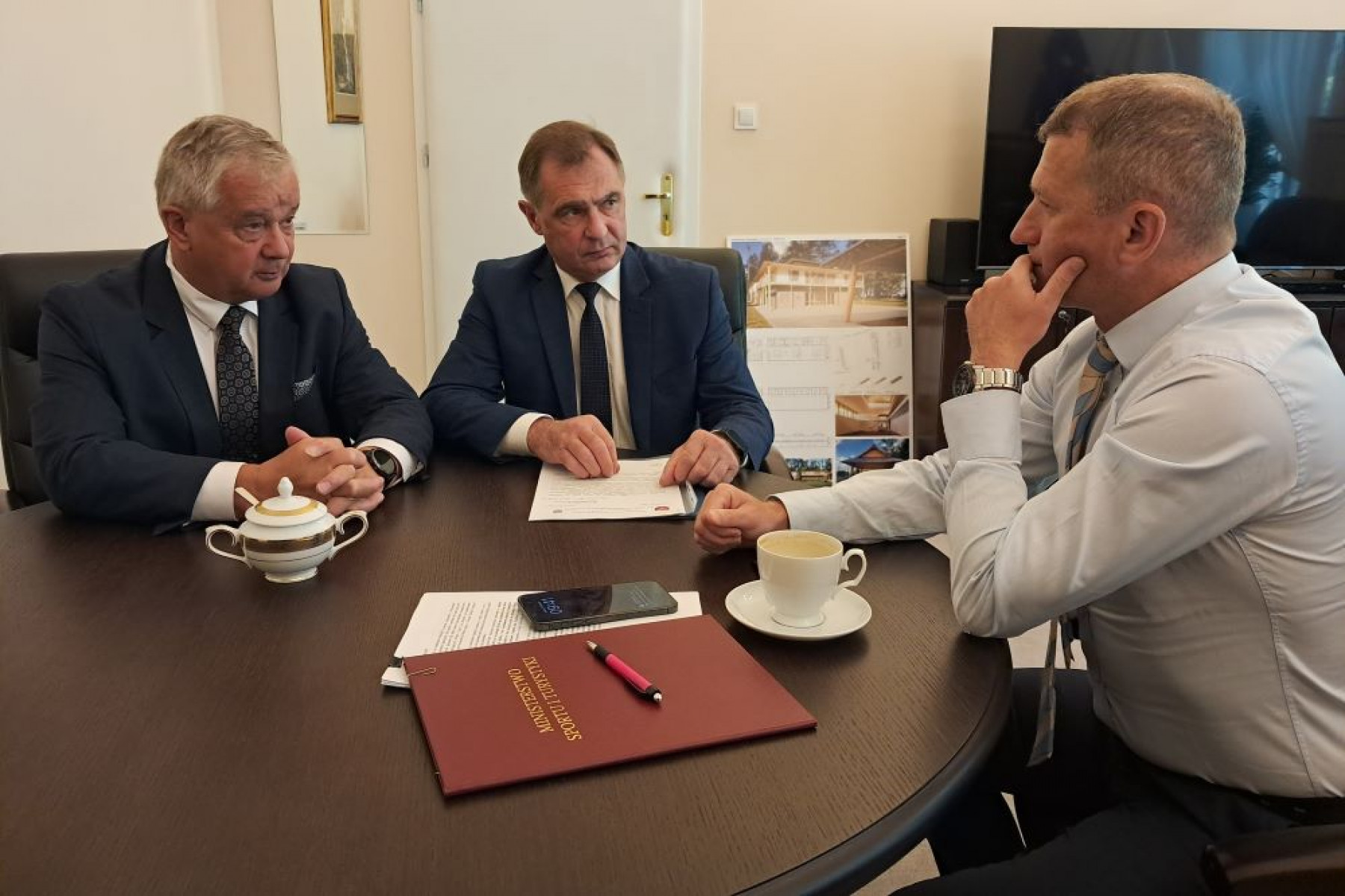 Z Wiceministrem Sportu i Turystyki - Ireneuszem Rasiem Starostowie Miechowscy rozmawiali w sprawie budowy hali sportowej przy Liceum Ogólnokształcącym w Miechowie, w ramach programu „Olimpia”.