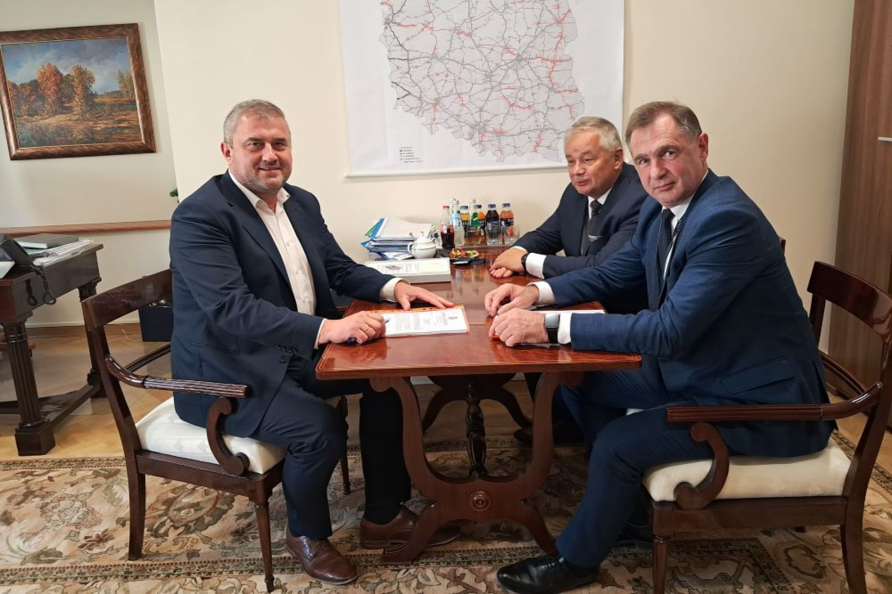 Rozmowa z Wiceministrem Bukowcem o współpracy w organizacji prac remontowych na drogach lokalnych w obrębie drogi ekspresowej S7 na terenie Powiatu.