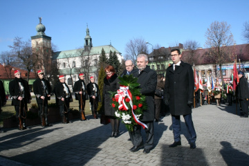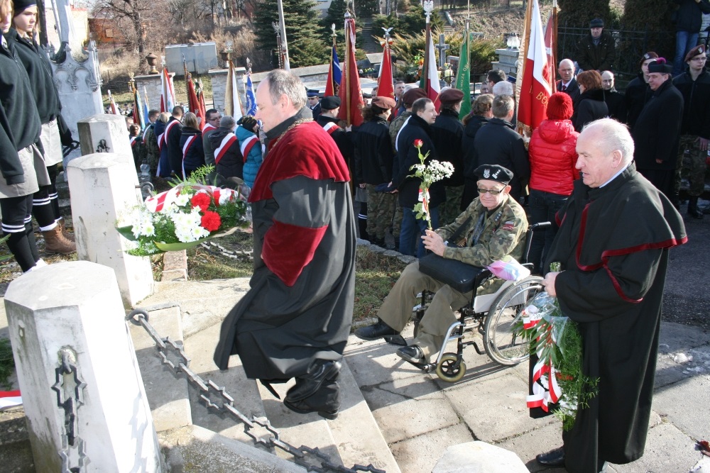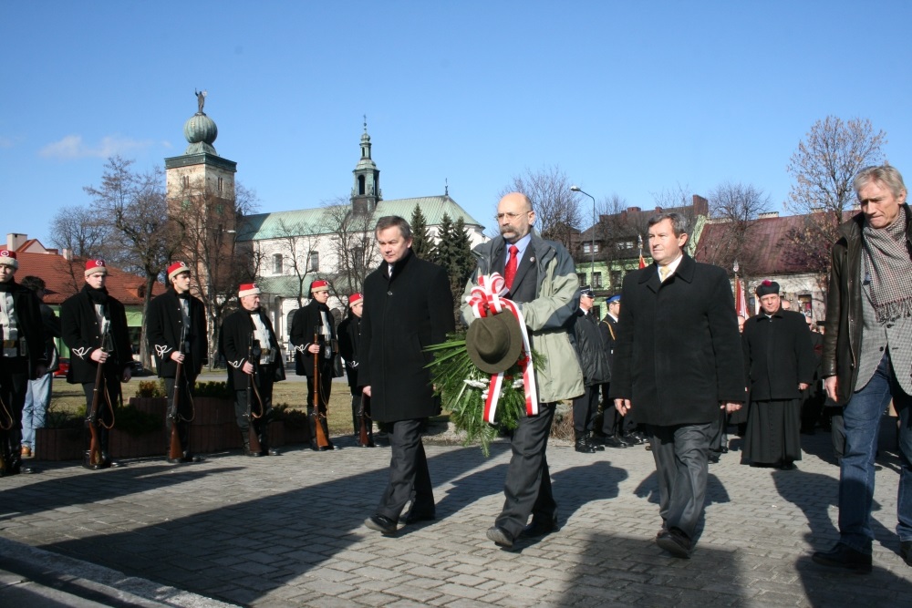- Tyle wolnoÅ›ci, ile prawdy w narodzie – mówiÅ‚ w homilii ks. MirosÅ‚aw Kaczmarczyk, proboszcz parafii Grobu Bożego w Miechowie, nawiÄ…zujÄ…c do historycznego wydarzenia, podczas którego powstaÅ„cy kierowali siÄ™ dewizÄ… ,,Bóg i Honor”. Przy skÅ‚adaniu kwiatów na cmentarnej mogile powstaÅ„ców i w Rynku przy Pomniku z OrÅ‚em uczestniczyli czÅ‚onkowie Grupy Rekonstrukcji Historycznej - PuÅ‚k Å»uawów Åšmierci z Buska – Zdroju, który mundurami i broniÄ… nawiÄ…zali do pamiÄ™tnego powstaÅ„czego zrywu. Dowódca grupy Robert OsiÅ„ski to prawnuk powstaÅ„ca styczniwego Józefa OsiÅ„skiego. Gospodarzami i organizatorami miechowskich obchodów byli: burmistrz Dariusz Marczewski i starosta Marian Gamrat, zaÅ› ceremoniarzem Å›wiÄ™ta WÅ‚adysÅ‚aw Mastrzykowski. UroczystoÅ›ci zaszczycili swÄ… obecnoÅ›ciÄ… parlamentarzyÅ›ci – poseÅ‚ Lidia GÄ…dek i senator Bogdan PÄ™k, generaÅ‚owie WP w stanie spoczynku – brygady Jerzy Wójcik i broni Waldemar Skrzypczak, radny Województwa MaÅ‚opolskiego Adam DomagaÅ‚a i pÅ‚k. Jerzy MichaÅ‚ Bożyk, wspóÅ‚organizator II Marszu Szlakiem Powstania Styczniowego. Listy z wyrazami uznania dla bohaterstwa powstaÅ„ców i gratulacjami dla organizatorów za kultywowanie pamiÄ™ci o historycznym dla Miechowa wydarzeniu przesÅ‚ali: minister Pracy i Polityki SpoÅ‚ecznej WÅ‚adysÅ‚aw Kosiniak – Kamysz i marszaÅ‚ek Województwa MaÅ‚opolskiego Marek Sowa.