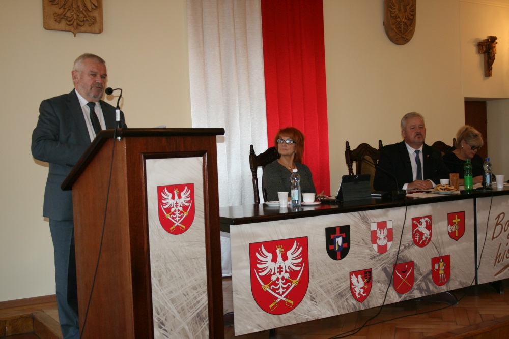 Zasadnicze głosowanie nad przyszłorocznym budżetem powiatu miechowskiego poprzedziła jego rekomendacja przez starostę. Główne wyznaczniki budżetu to prawie 72,9 mln zł po stronie dochodów i 76,8 mln zł po stronie wydatków. Skarbnik Teresa Florek zapoznała uczestników sesji z pozytywną opinią Składu Orzekającego Kolegium RIO w Krakowie nt. projektu uchwały budżetowej powiatu na rok 2018. Taka samą opinię odczytał w imieniu Komisji Budżetowej Rady Powiatu jej przewodniczący Jacek Kobyłka. Dyskusja na projektem przyszłorocznych finansów miała ożywiony przebieg, a to za sprawą przeznaczenia i podziału blisko 25 mln zł na liczne inwestycje. Wśród tych ostatnich ponad 19 mln zł będą kosztowały przebudowy, modernizacje i remonty na sieci dróg powiatowych. Prawie 6 mln zł będzie warta przebudowa odcinka drogi relacji Czaple Małe - Czaple Wielkie o dług. 7,5 km w gminie Gołcza. Z kolei przebudowa ciągu drogowego w gminie Książ Wielki do projektowanej drogi S7 to koszt 5,3 mln zł. Modernizacja drogi z Bukowskiej Woli w kierunku Działoszyc o dług. 19 km została oszacowana na 4,4 mln zł. Trwająca budowa północnego obejścia Miechowa zostanie przez powiat w tym roku dofinansowana kwotą ponad miliona złotych. W planie jest także przywrócenie właściwego stanu technicznego mostu drogowego w Przesławicach w gm. Miechów (zabezpieczono na ten cel kwotę 375 tys. zł). Kolejne 3 mln zł zarezerwowano na inne modernizacje dróg powiatowych. Oprócz zadań drogowych budżet 2018 uwzględnia m.in. rozbudowę DPS w Miechowie za kwotę 1,9 mln zł, przebudowę boiska sportowego przy ZS Nr 2 w Miechowie za 0,5 mln zł, rozbudowę e-usług w informacji przestrzennej powiatu o wartości 1,6 mln zł. Na pomoc społeczną przeznaczono 1,9 mln zł. W celu sfinansowania zaplanowanych zadań przewidziano zaciągnięcie kredytu w kwocie ok. 5,5 mln zł. Po burzliwej wymianie poglądów pomiędzy radnymi projekt przedmiotowego budżetu został uchwalony większością głosów (przeciw głosowało dwóch radnych, jeden wstrzymał się od głosu). W takich samych proporcjach przegłosowano uchwałę w sprawie przyjęcia wieloletniej prognozy finansowej powiatu miechowskiego. W trakcie ostatniej sesji radni podjęli osiem uchwał, których treść odczytała sekretarz Maria Sztuk. Uchwalony plan pracy Rady Powiatu na przyszły rok przewiduje 6 sesji problemowych.