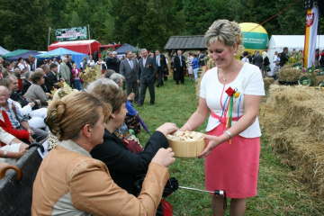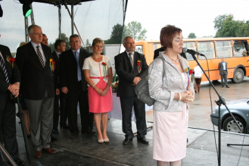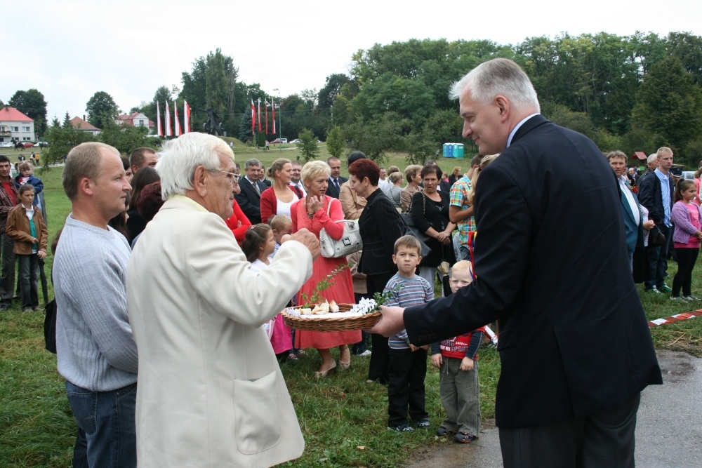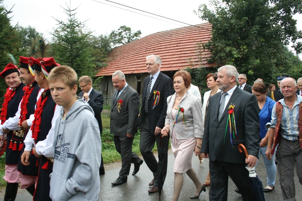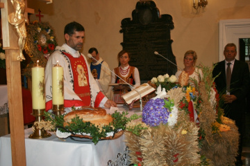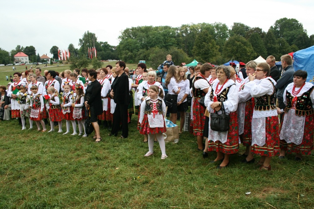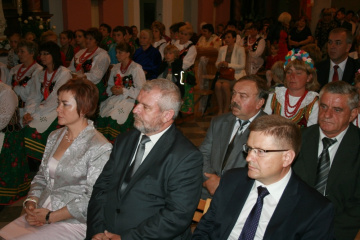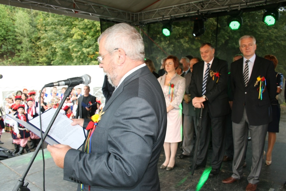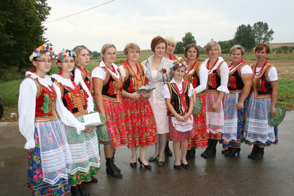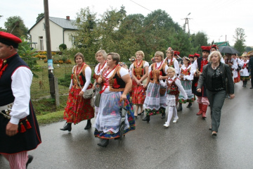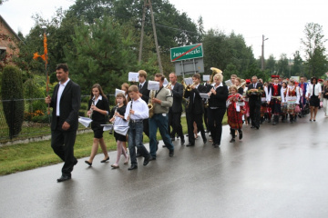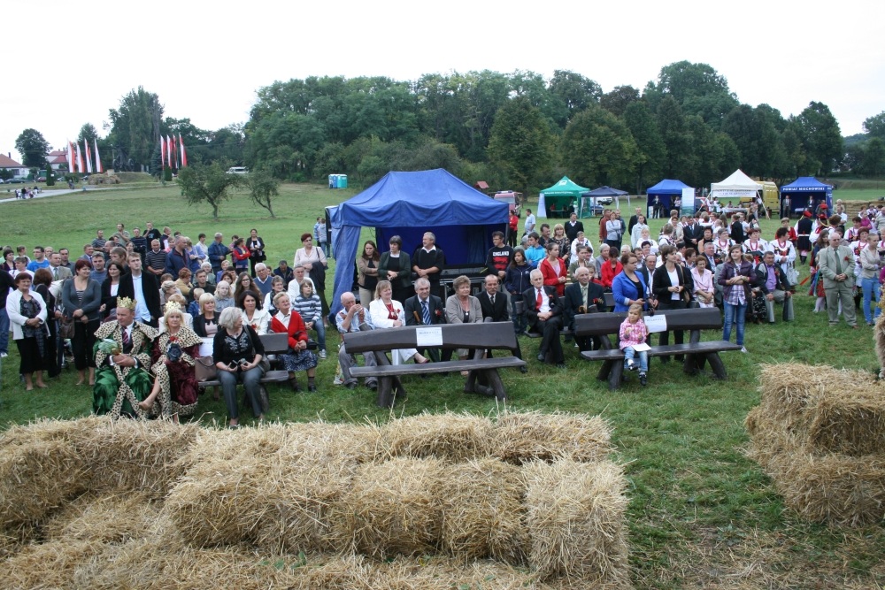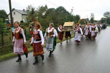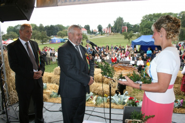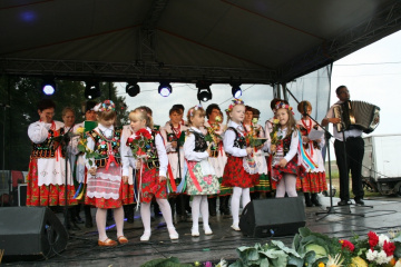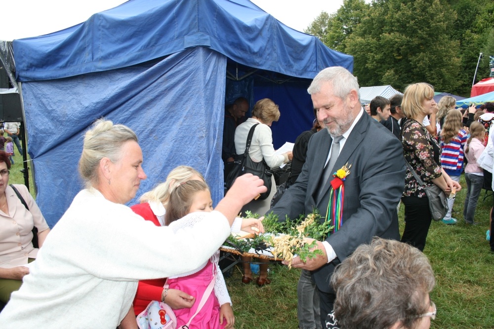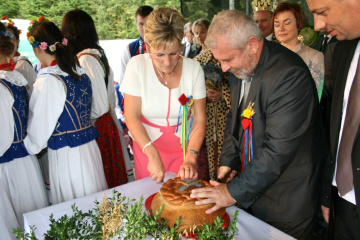 29 Sierpnia 2012(...) Dalej gospodynie reprezentujące gminne Koła Gospodyń Wiejskich niosły ozdobne wieńce dożynkowe. Tuż za nimi podążali starostowie dożynkowi z bochnem chleba, goście, samorządowcy i okoliczni mieszkańcy. Dożynkowa niedziela rozpoczęła się od uroczystego nabożeństwa, które celebrował ks. proboszcz Krzysztof Gałecki. W okolicznościowej homilii zwrócił uwagę na tych, którzy uprawiają ziemię i żywią – rolników. Na scenie dożynkowej w Janowiczkach zebranych witał współgospodarz święta wójt Gminy Racławice Adam Samborski. Starosta Marian Gamrat w krótkiej wypowiedzi zwrócił się do rolników powiatu miechowskiego: ,,Jesteśmy wprawdzie na ziemi związanej z historycznymi wydarzeniami Insurekcji Kościuszkowskiej, ale pamiętajmy, że podobnie jak w innych gminach jest to miejsce związane przede wszystkim z trudem i tradycją rolniczą. Dlatego dziękuję Wam za tegoroczne zbiory, które są Wasza, miechowskich rolników zasługą. Dziękuję za wszelkie poświęcenia i wyrzeczenia i życzę zdrowia i sił na kolejne lata życia i pracy” . Z życzeniami pomyślności sukcesów w pracy na roli do miechowskich rolników zwrócili się: minister sprawiedliwości Jarosław Gowin, posłanka Lidia Gądek i dyrektor ARiMR w Krakowie Włodzimierz Okrajek. Jednak kulminacja części obrzędowej było przekazanie przez starostów dożynkowych chleba wypieczonego z tegorocznych zbiorów na ręce gospodarza – starosty miechowskiego. W tej roli znakomicie wywiązali się: Ewa Gacek z Bryzdzynia z gminy Kozłów (przyszłoroczny współorganizator powiatowych dożynek) i Robert Łój z Głupczowa z gminy Racławice. Po wymianie tradycyjnych formułek pomiędzy starostą a starostami dożynkowymi bochen chleba został sprawnie rozcięty, a kawałki ,,rolniczego trudu” trafiły do gości i mieszkańców zgromadzonych przy scenie. Kolejne punkty imprezy były ściśle związane z obrzędowością dożynkową. Najpierw sceną zawładnęli uczniowie SP i Gimnazjum w Racławicach oraz ZS Nr 1 w Miechowie. Po nich gminne reprezentacje KGW prezentowały wieńce dożynkowe wspierając się przy tym żartobliwymi przyśpiewkami. W części rozrywkowej widowni bawił zespół ,,Mirella” działający przy Uniwersytecie Trzeciego Wieku ,,Aktywne życie” oraz wykonawcy z Miechowskiego Domu Kultury. Finałem dożynkowego wieczoru był występ zespołu ,,Onyx”, który zaprezentował popularne przeboje disco – polo.