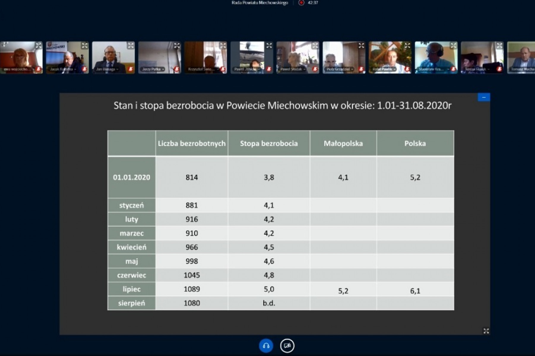 Od początku 2020 roku bezrobocie w Powiecie Miechowskim wzrosło. W styczniu stopa bezrobocia wynosiła 3,8%, a już na koniec lipca była na poziomie 5%. Wpływ na to miała ogólnopolska blokada gospodarki i związana z tym niepewność na rynku pracy ze względu na wystąpienie pandemii koronawirusa.