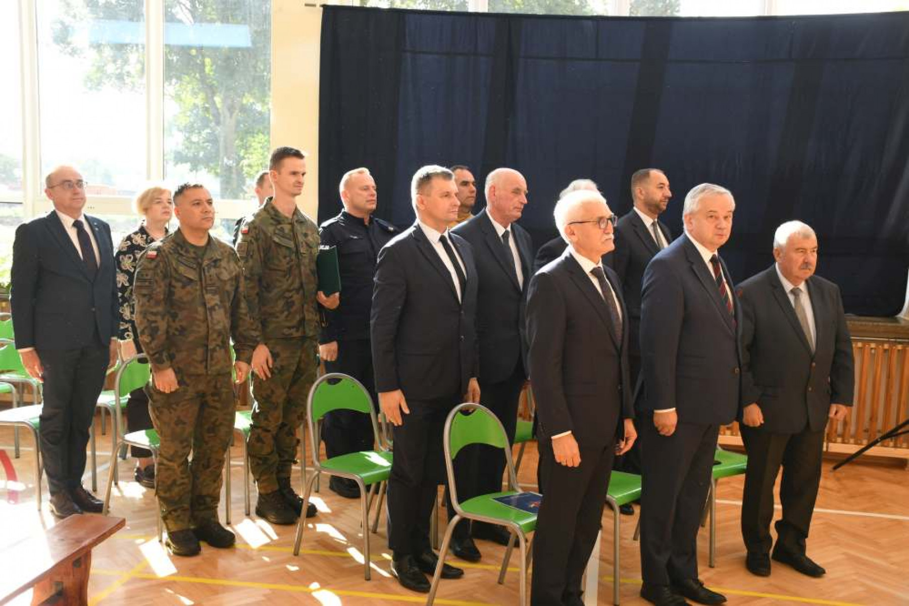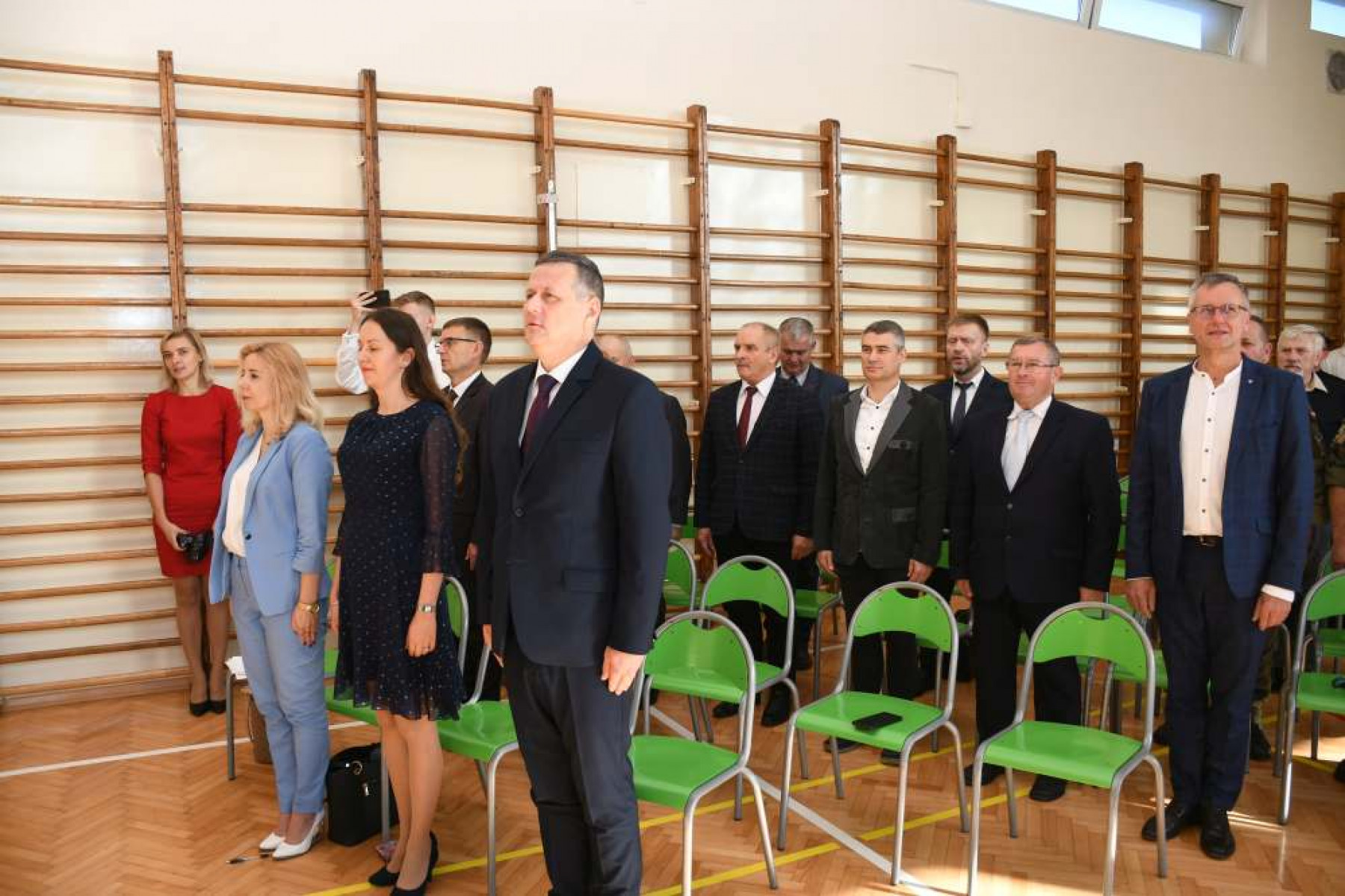 Przewodniczący Krzysztof Świerczek, który jak przyznał, 45 lat temu w tej szkole składał ślubowanie jako pierwszoklasista „Mechanika” podkreślał, iż jesteśmy świadkami niezwykle ważnego wydarzenia, nie tylko dla społeczności szkolnej. Wyraził radość z faktu, ze młodzież będzie mogła ćwiczyć elementy wojskowości, które on sam kształtował najpierw w tej szkole na zajęciach z przysposobienia obronnego, a potem podczas 2-letniej obowiązkowej służbie wojskowej. Obecnie uwarunkowania zewnętrzne na wschodzie i niepewności jutra dowodzą, iż Powiat Miechowski z dużym wyprzedzeniem trafił w to, by inwestować również w edukację o charakterze wojskowym.