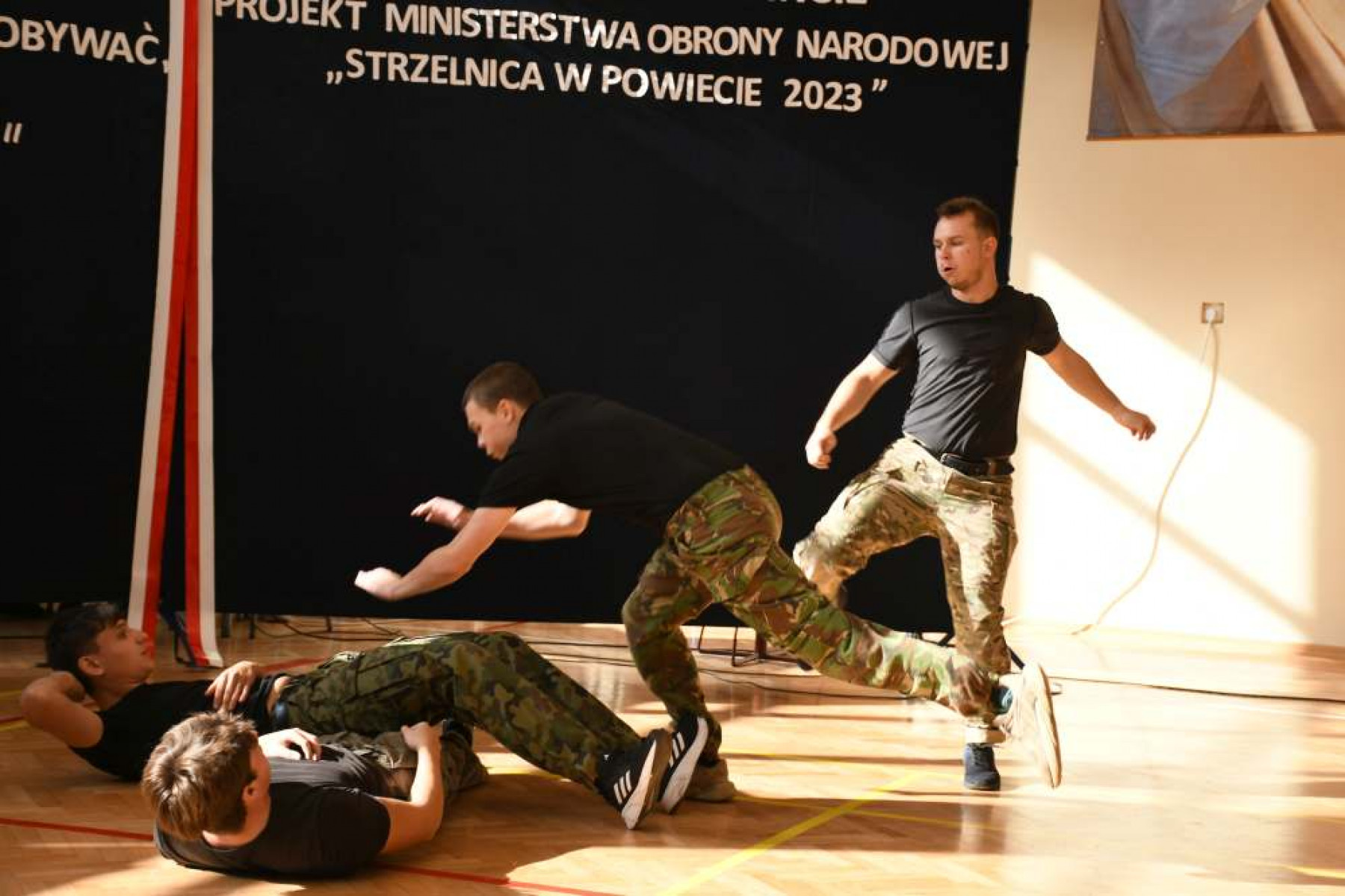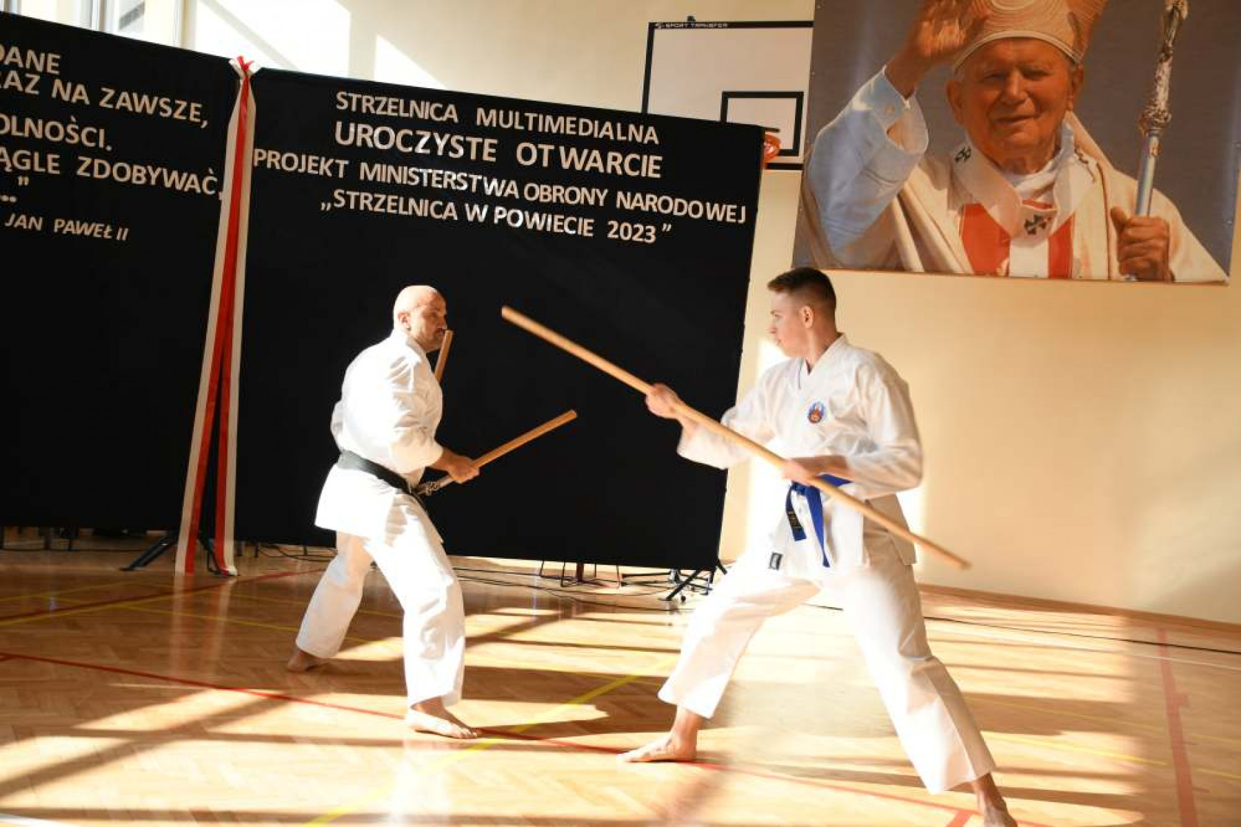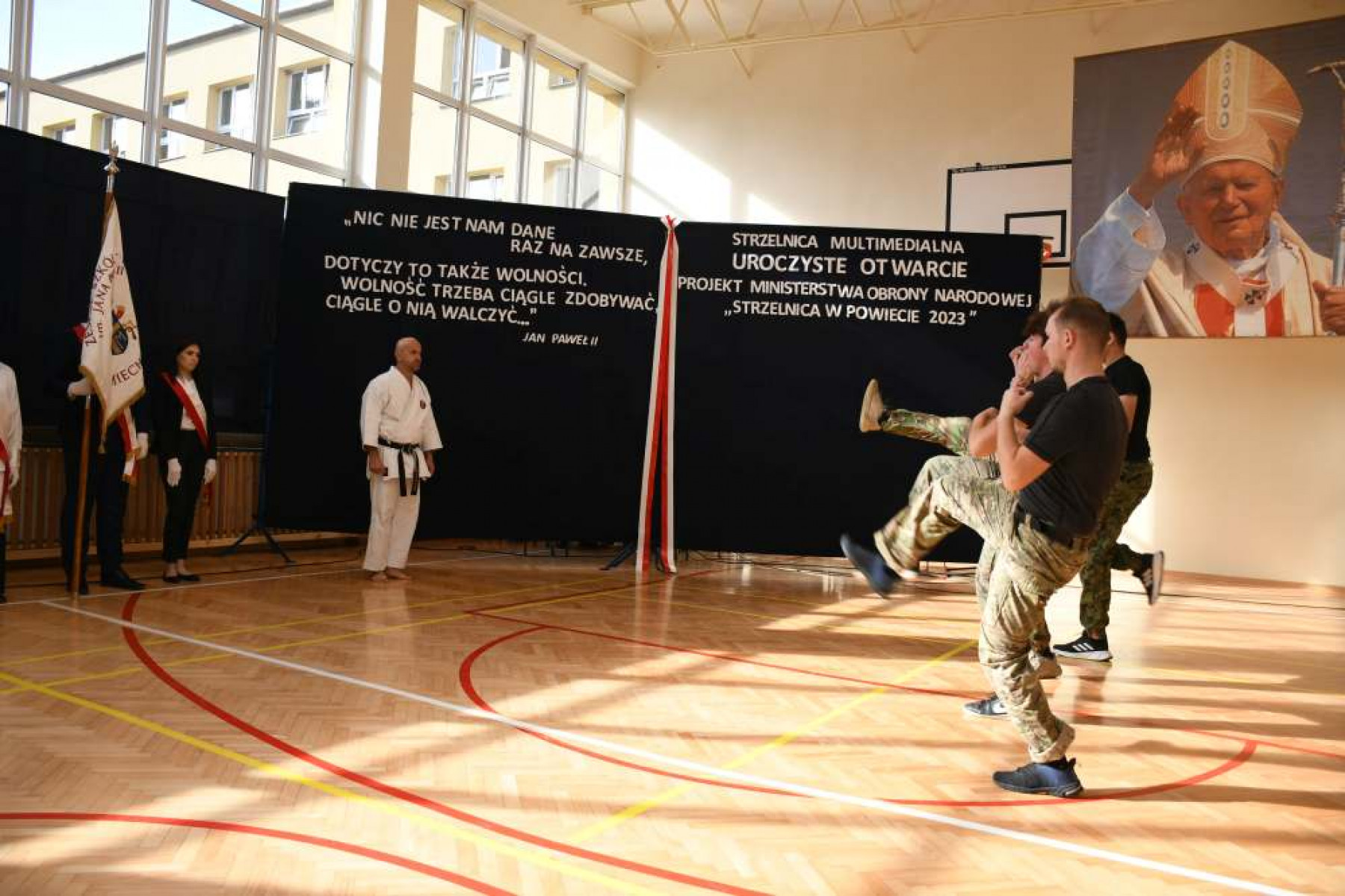 Otwarcie wirtualnej strzelnicy w ZS Nr 2 w Miechowie - pokaz umiejętności walki wręcz