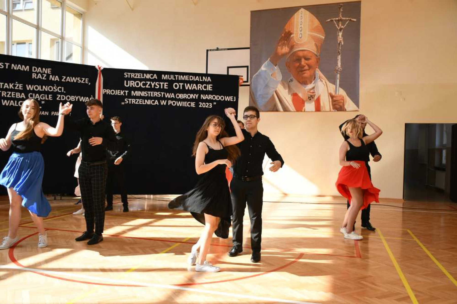 Otwarcie wirtualnej strzelnicy w ZS Nr 2 w Miechowie - krakowiak w wykonaniu uczniów