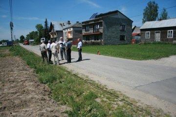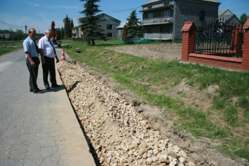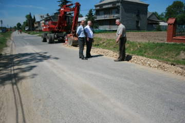 Objazd prowadzonych robót drogowych rozpoczęto od gminy Charsznica. Starosta Marian Gamrat razem z gospodarzem terenu, wójtem Janem Żebrakiem, członkiem Zarządu Powiatu Mariuszem Wolnym i dyrektorem Zarządu Dróg Powiatowych Jerzym Muszyńskim konfrontowali z rzeczywistością zakres prac drogowych przy drodze Boża Wola – Jeżówka – Tczyca. Tutaj żywioł dał się szczególnie we znaki niszcząc drogę na znacznej części. Samorządowcy spotkali się na odcinku w Tczycy z pracownikami wykonawcy: Przedsiębiorstwa Robót Drogowo–Mostowych z Myszkowa k/Częstochowy, którzy ,,uzbrojeni” w specjalistyczny sprzęt prowadzą prace przygotowawcze. Polegają one na utwardzaniu wcześniej powstałych przełomów. O szczegółach robót informował wiceprezes firmy Andrzej Morawiec.