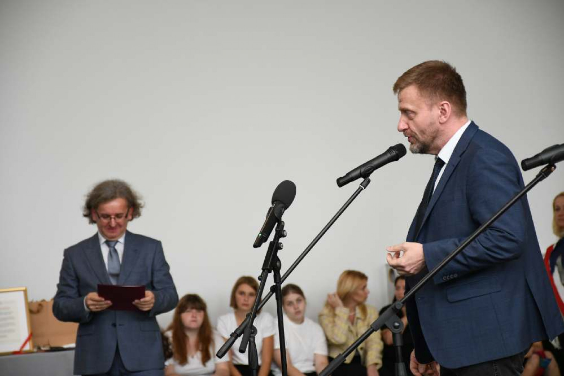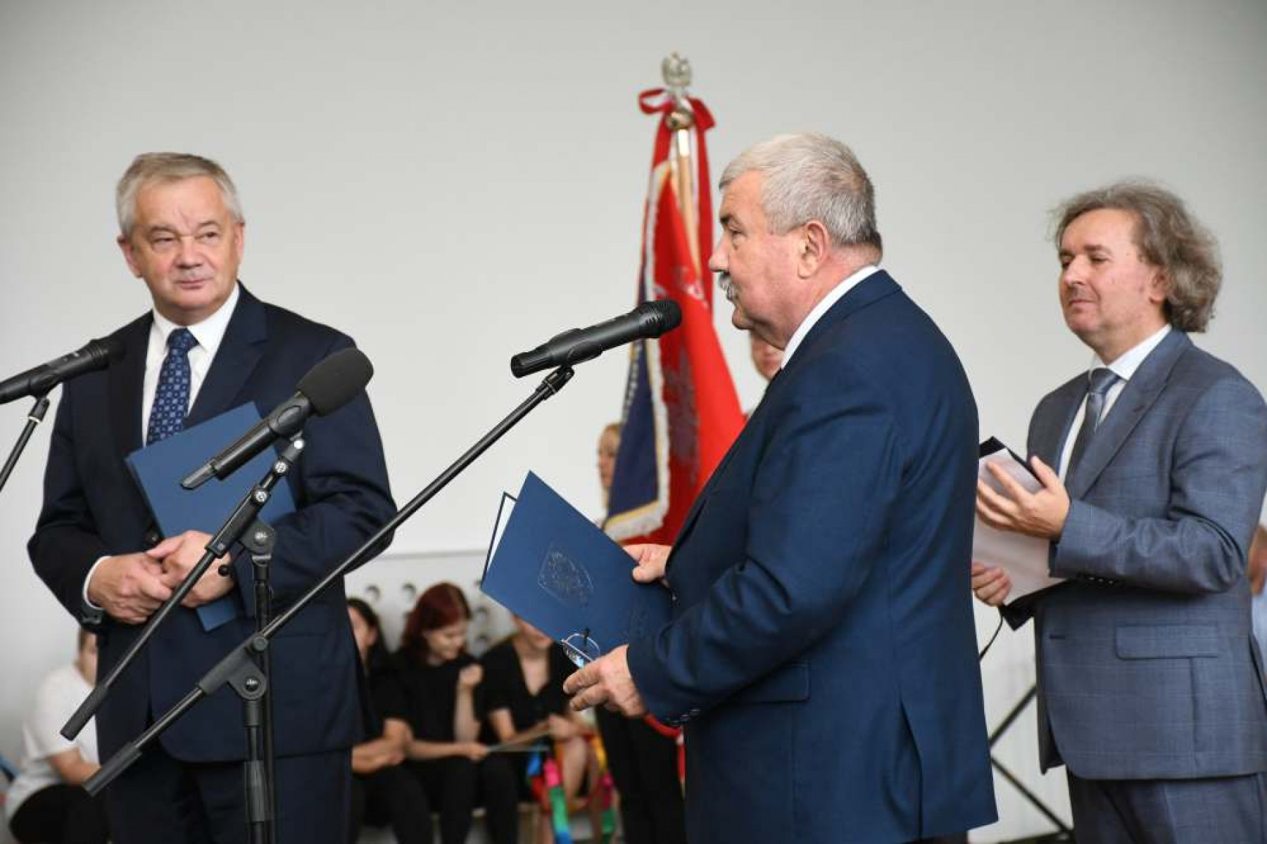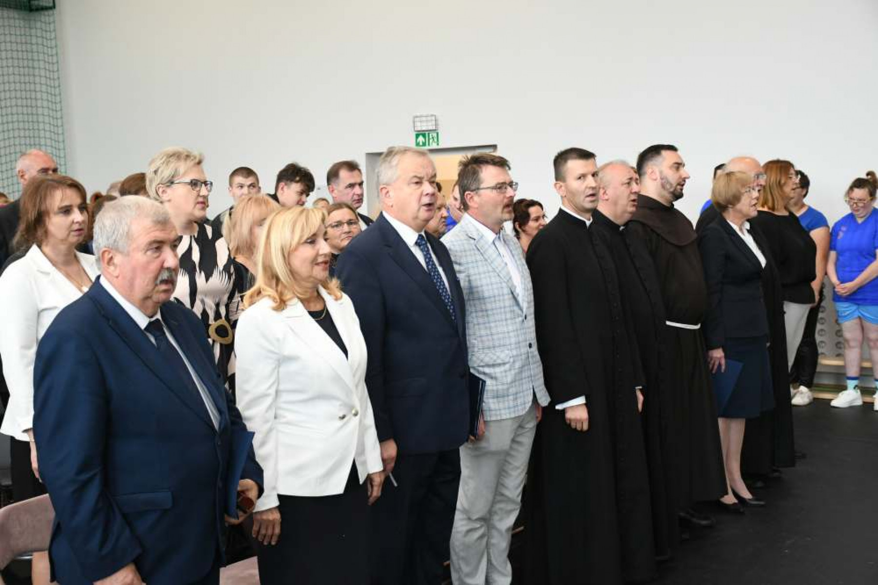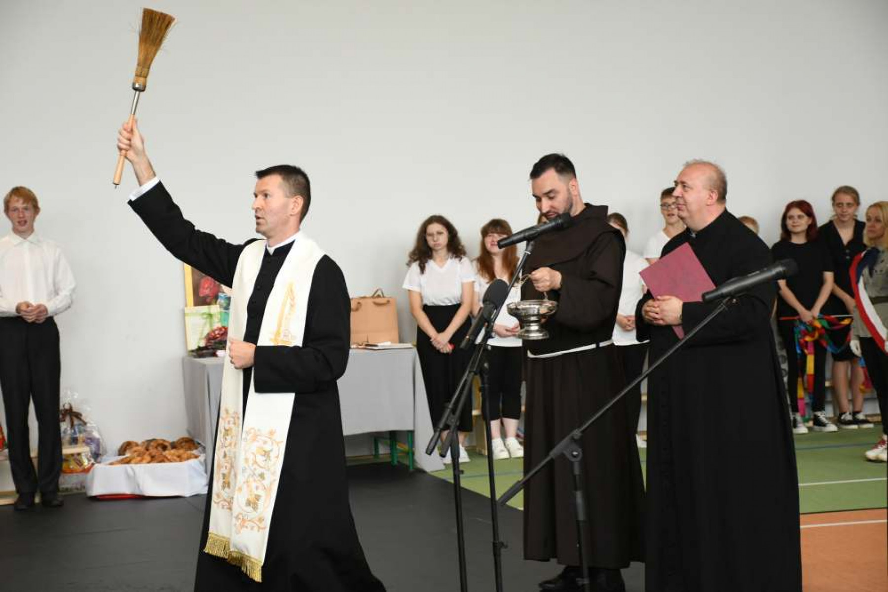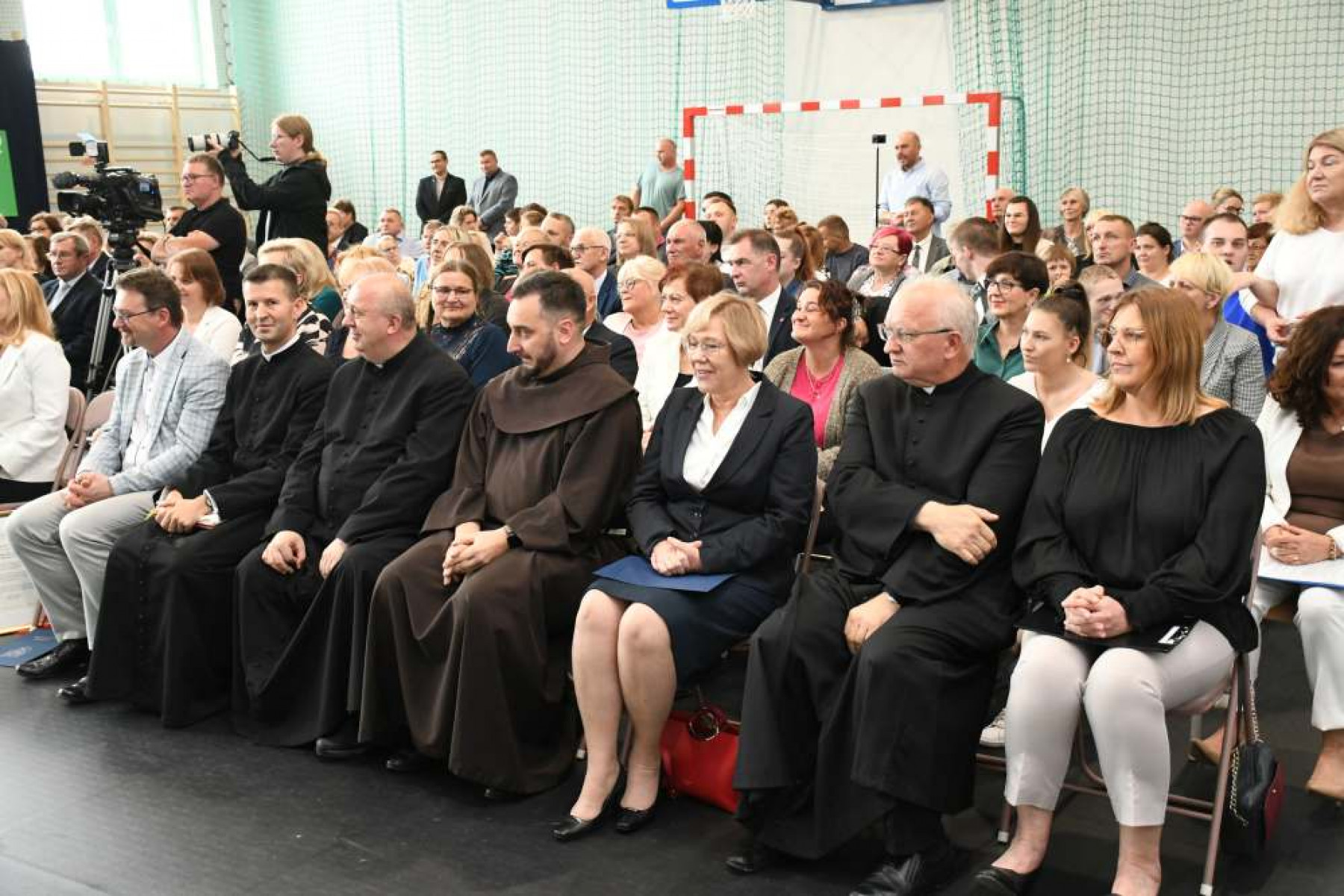 - Jest to bardzo radosny dzień dla społeczności szkolnej i całego Powiatu Miechowskiego - podkreślał Krzysztof Świerczek, Przewodniczący Rady Powiatu witając gości, wśród których znaleźli się m.in.: Poseł RP Elżbieta Duda, Tomasz Tomala - dyr. Departamentu Społecznego Ministerstwa Infrastruktury, Barbara Nowak - Małopolski Kurator Oświaty, Mirosław Dróżdż - radny Sejmiku Małopolskiego i dyr. Szpitala św. Anny w Miechowie, Burmistrz Dariusz Marczewski, Zarząd i radni Powiatu Miechowskiego, ks. dr Paweł Ścisłowicz - dyr. Wydziału Katechetycznego Kurii Biskupiej w Kielcach, ks. Franciszek Siarek - proboszcz Parafii Miechów, ks. Krzysztof Gadowski - proboszcz Parafii Pstroszyce I, ojciec Anastazy wywodzący się z Zagorzyc, komendanci powiatowych służb mundurowych - nadleśniczy Jan Karczmarski, podinsp. Jacek Rosół, mł. bryg. Mariusz Idzik, dyrektorzy szkół i szefowie rozmaitych instytucji i organizacji.