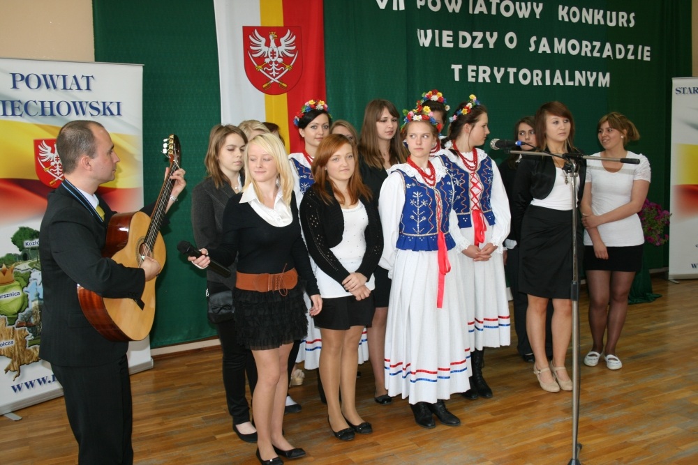 (...) - Jej celem jest popularyzacja wiedzy o samorządzie terytorialnym i promocja gmin oraz powiatu miechowskiego. Poprzez ten konkurs przybliżamy naszym uczniom założenia i dokonania nowoczesnego samorządu terytorialnego, który 22 lata temu narodził się w Polsce – mówiła Marzena Samborska, dyrektor szkoły, witając gości i uczestników konkursu. O znaczeniu samorządu w lokalnym środowisku i potrzebie zgłębiania wiedzy na jego temat przez młodzież mówił starosta Marian Gamrat, który objął patronat nad konkursem. Wykład inauguracyjny nt. ewolucji współczesnego samorządu terytorialnego w Polsce wygłosił dr Marian Wójcik z Katedry Zarządzania Zasobami Ludzkimi Uniwersytetu Ekonomicznego w Katowicach. Wśród obecnych byli także: doc. dr Jerzy Siemianowicz ze Śląskiej Wyższej Szkoły Zarządzania w Katowicach, na co dzień Dziekan Zamiejscowego Wydziału Nauk o Zdrowiu w Tychach, radni, pracownicy Wydziału Oświaty starostwa, dyrektorzy szkół obu szczebli, i oczywiście pedagodzy i uczniowie ZS Nr 1. Część oficjalną imprezy poprzedził etap finałowy, podczas którego uczniowie odpowiadali na 20 pytań tematycznych. W kategorii gimnazjów indywidualnie zwyciężyli: I miejsce - Martyna Basoń - Gołcza , II m. Sebastian Konieczny – Gołcza, III m. Martyna Bróg – Dziaduszyce. Drużynowo wygrał zespół Gimnazjum w Gołczy, przed Dziaduszycami i Tczycą. Wśród uczniów szkół ponadgimnazjalnych najlepszymi okazali się: I m. - Ewa Oleksy – ZS Nr 1, II m. – Angelika Pieron – ZS Nr 1 i III m. Marcin Bijak – LO (uczniowie ze szkół miechowskich). Drużynowo zwyciężył ZS Nr 1 przed ZS Nr 2 i LO (szkoły miechowskie). Przed ogłoszeniem wyników starosta Marian Gamrat został "przepytany z tematyki samorządowej" przez uczniów zebranych na sali. Pytania dotyczyły perspektyw życiowych dla młodych miechowian, najlepszych i trudnych decyzji podjętych dotychczas na stanowisku starosty oraz możliwości korzystania przez młodzież szkolną z budowanej krytej pływalni.