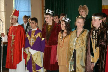 Konkursowe zmagania poprzedziła barwna inscenizacja pn. ,,Bóg tak chciał" przypominająca dzieje Miechowa i związki miasta z Ziemią Świętą i działalnością Zakonu Bożogrobców. W role zakonników, biskupów, księcia Jaksy, rycerzy, możnowładców, szlachty i kupców wcielili się uczniowie ZS Nr 1 odziani w stroje z epoki. Widowisko składające się z chronologicznych symbolicznych ,,slajdów" historycznych wyreżyserowały s. Donata Topa i Katarzyna Mucha, scenografię przygotowała Joanna Maciejek, a choreografię opracowały Jolanta Wojtiuk i Dorota Skrzypek - nauczyciele z popularnego "ekonomika".