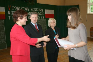 (...) z powiatu miechowskiego. Uczestnicy rozwiązywali test, a potem przedstawiali prezentacje, których hasłem przewodnim był wpływ środków zewnętrznych na rozwój gminy (dla gimnazjalistów) lub powiatu (dla uczniów szkół średnich). W tej ,,unijnej rywalizacji", którą oceniało jury pod przewodnictwem Marty Wiechniak - Małek, wizytatora Kuratorium Oświaty w Krakowie, najlepsze okazały się reprezentacje gimnazjów z Racławic (I m.), Książa Wielkiego (II m.) i Charsznicy (III m.) oraz drużyny szkół ponadgimnazjalnych - ZS Nr 1 (I m.), LO w Miechowie (II m.) i ZS w Książu Wielkim (III m.). Indywidualnie test o wiedzy samorządowej najlepiej rozwiązali gimnazjaliści: Sebastian Konieczny - Gołcza, Piotr Depta i Ilona Muszyńska z Racławic. Wśród uczniów szkół ponadgimnazjalnych zwyciężyli: Anna Żurek i Anna Pietrzyk - ZS Nr 1 oraz Ilona Adler - ZS Nr 2 (szkoły miechowskie).