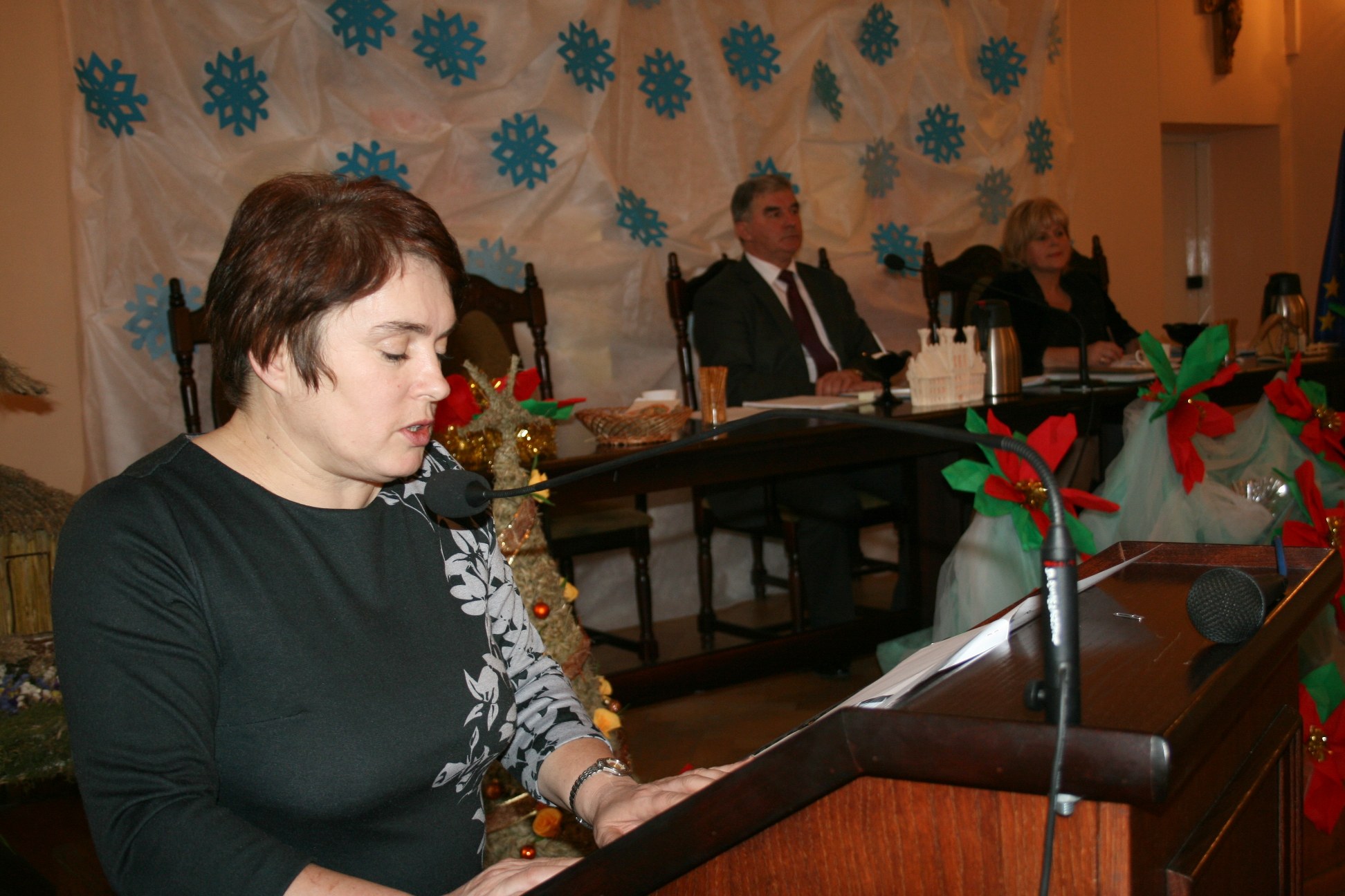 Z racji kończącego się roku nie zabrakło statystyki. Sprawozdanie z prac Zarządu Powiatu, działalności Rady Powiatu i aktywności komisji stałych rady za minione 12 miesięcy złożyli starosta, przewodniczący rady i przewodniczący komisji branżowych. Następnie sekretarz powiatu Maria Sztuk odczytała teksty 15. projektów uchwał, które zostały przyjęte w wyniku głosowania. Wśród nich znalazły się m.in. uchwały dot. planów pracy rady i komisji stałych na rok 2012, budżetu powiatu na nowy rok, wieloletniej prognozy finansowej powiatu do roku 2026, przyjęcia Programu Ochrony Zdrowia Psychicznego do roku 2015, Strategii łagodzenia skutków bezrobocia w powiecie do roku 2016, majątku powiatu, spraw organizacyjnych. Nowością w przyszłym roku w strukturze rady powiatu będzie nowo powołana Komisja Koordynacyjna. Finalna tegoroczna sesja Rady Powiatu została dopełniona akcentem świątecznym. Uczniowie Szkoły Podstawowej Nr 1 w Miechowie, na tle okolicznościowej dekoracji i w jasełkowych strojach, zaśpiewali popularne kolędy, wspierani przez swoją opiekunkę i radną powiatową Lidię Baranowską. Obrady zakończyły odpowiedzi starosty na złożone przez radnych interpelacje oraz życzenia świąteczne i noworoczne od prowadzącego sesję Mariana Brodowicza, przewodniczącego Rady Powiatu w Miechowie.