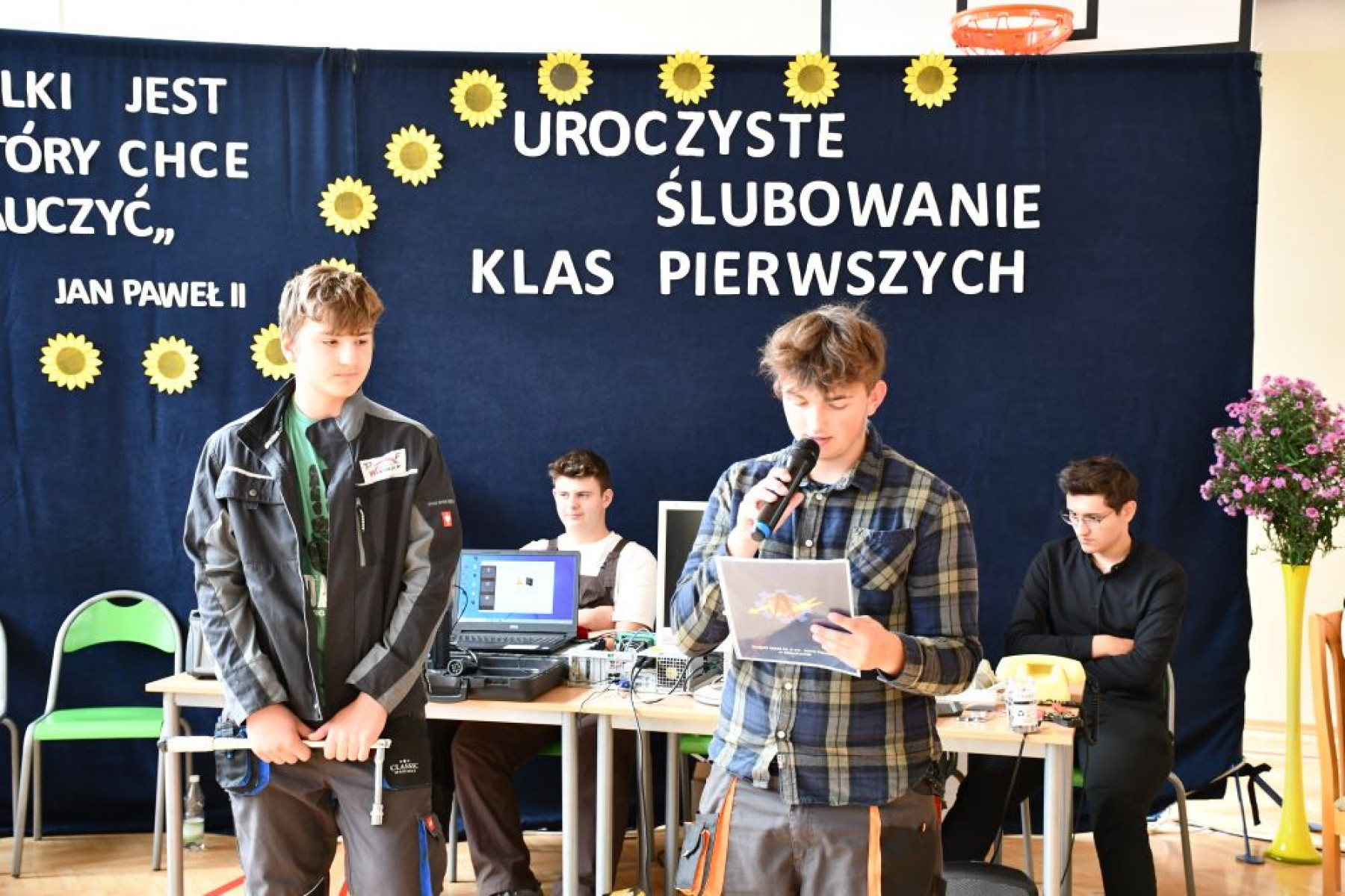 W piątek 27 września w Zespole Szkół nr 2 w Miechowie im. Jana Pawła II odbyło się uroczyste ślubowanie klas pierwszych. W wydarzeniu udział wzięli Wicestarosta Powiatu Miechowskiego - Jerzy Pułka oraz Członek Zarządu Powiatu - Piotr Grządziel.