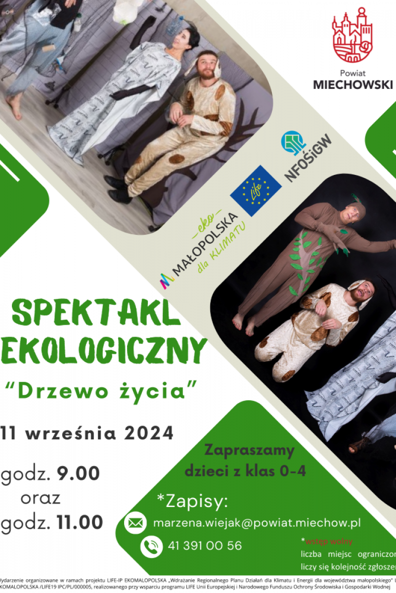 W środę 11 września w Miechowskim Domu Kultury miał miejsce spektakl ekologiczny dla najmłodszych pt. "Drzewo życia". Było to wydarzenie realizowane w ramach działań projektu LIFE-IP EKOMAŁOPOLSKA (LIFE 19 IPC/PL/000005). Wstęp na spektakl był bezpłatny i przeznaczony dla widzów w wieku 4-10 lat (klasy 0-4).