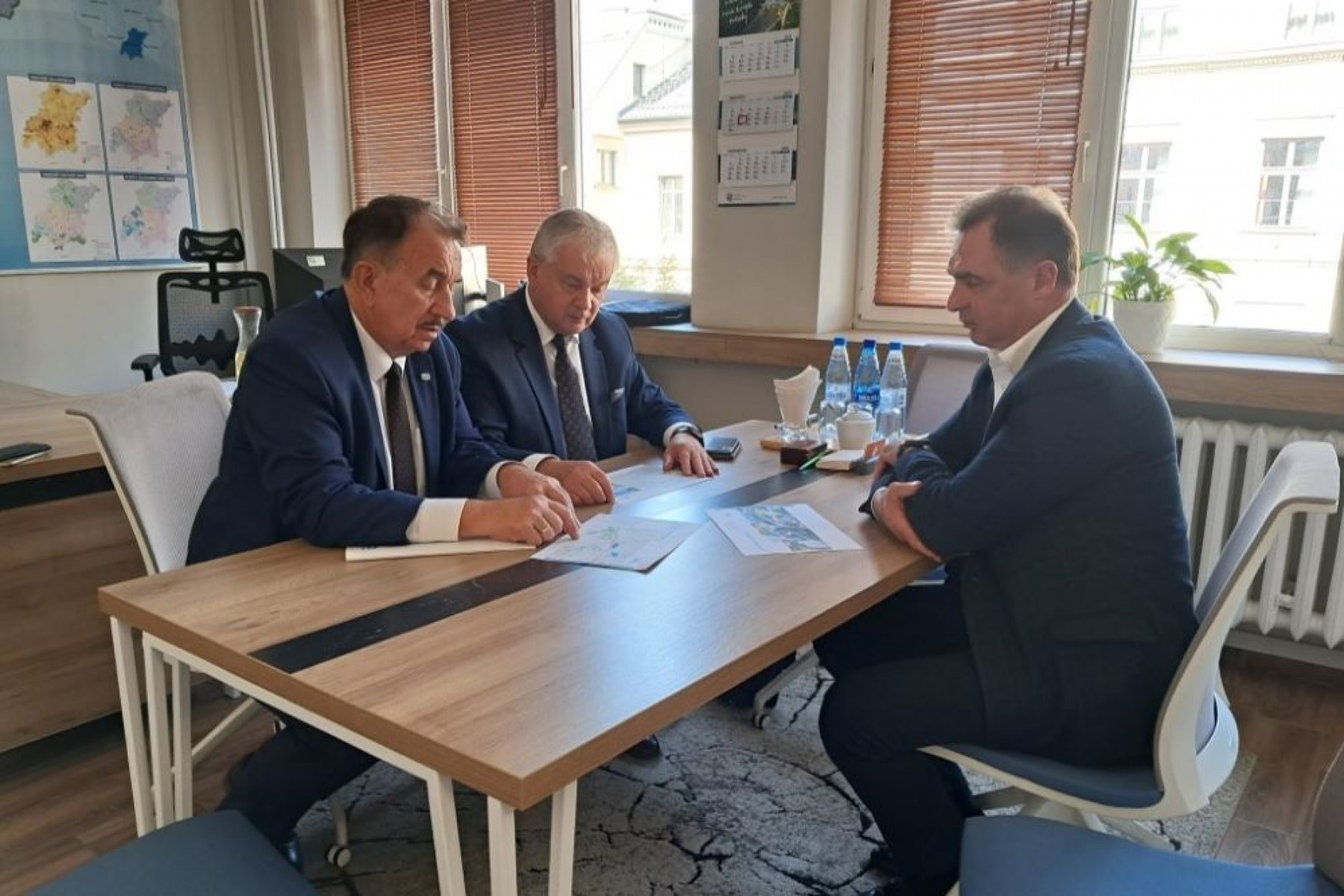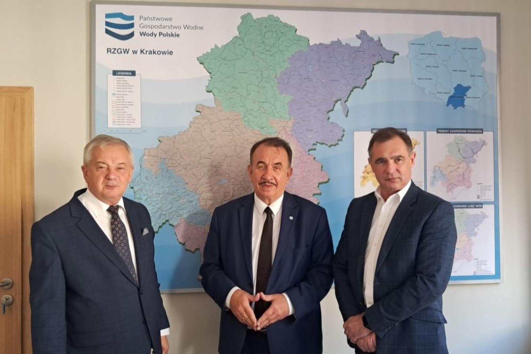 We wtorek 17 września Starostowie Powiatu Miechowskiego - Krzysztof Świerczek i Jerzy Pułka spotkali się z Dyrektorem Regionalnego Zarządu Gospodarki Wodnej Wody Polskie w Krakowie - Wojciechem Kozakiem.