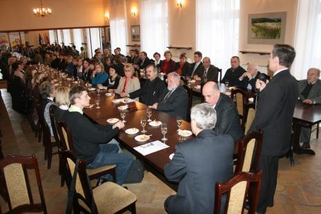 (...) wspólnej pracy i podziękował wszystkim pracownikom za wniesiony wkład we wspólne sukcesy. Podziękował także za uznanie, z jakim pracownicy miechowskiego starostwa spotkali się ze strony klientów w ramach tegorocznej ankiety związanej z doskonaleniem jakości urzędniczych usług. Razem z wicestarostą Stanisławem Pietrzykiem i przewodniczącym Rady Powiatu Stanisławem Krawcem złożył załodze noworoczne życzenia. W imieniu pracowników pomyślnego Nowego 2010 Roku życzył rzecznik prasowy powiatu. W spotkaniu uczestniczyli również emerytowani pracownicy starostwa. Na zakończenie wzniesiono noworoczny toast i wykonano pamiątkową fotografię.