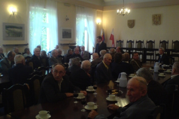(...) Na zaproszenie starosty Mieczysława Bertka licznym udziałem odpowiedzieli członkowie Związku Kombatantów RP i b. Więźniów Politycznych na czele z prezesem mjr. Józefem Jarno, członkowie Stowarzyszenia Żołnierzy Armii Krajowej - Inspektoratu AK ,,Maria" w Miechowie ze swoim prezesem por. Adolfem Nowakowskim i członkowie Związku Inwalidów R.P. w Miechowie z prezesem Zdzisławem Cacałą. Obecni byli również członkowie Powiatowej Społecznej Rady Kombatantów z gmin powiatu (z wyjątkiem gminy Słaboszów) oraz przedstawiciele Rejonowego Klubu Oficerów Rezerwy i Związku Byłych Żołnierzy Zawodowych i Oficerów Rezerwy R.P. Kombatantów podejmowali starosta, wicestarosta Stanisław Pietrzyk, przewodniczący Rady Powiatu Stanisław Krawiec i rzecznik prasowy Ryszard Nasada. Wznosząc toast za zdrowie kombatantów starosta Mieczysław Bertek powiedział, że doroczne spotkania z nimi są rodzajem uznania i wyrazem szacunku dla wywodzących się z ziemi miechowskiej, żyjących uczestników tamtych tragicznych i bohaterskich wydarzeń, którzy najlepsze, młodzieńcze lata swego życia oddali w obronie Ojczyzny. Minutą ciszy upamiętniono tych, którzy polegli w dziejowej zawierusze. Swoje osobiste refleksje o zmaganiach z hitlerowskim i sowieckim okupantem wyrazili: mjr Józef Jarno i mjr Stefan Kwiecień z Miechowa oraz Mieczysław Gąciarz z Orłowa z gm. Słomniki. W wypowiedziach kombatantów, oprócz historycznych wspomnień znalazły się także odniesienia do ich obecnej sytuacji życiowej (m.in. sprawa opieki medycznej). Okolicznościowe spotkanie zakończyła wiązanka pieśni patriotycznych w wykonaniu Marcina Durmana, Grzegorza i Michała Kawy z Miechowskiego Domu Kultury.