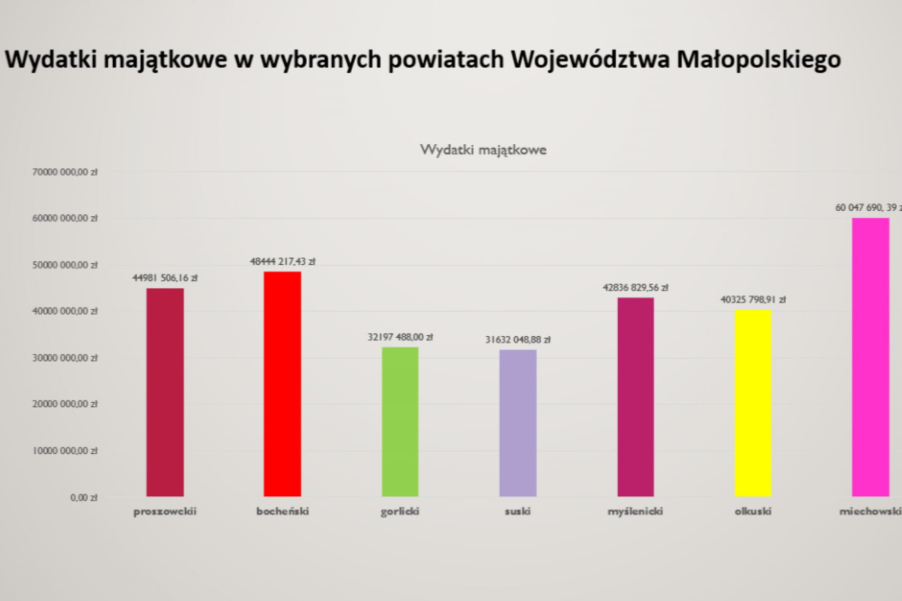 Wydatki majątkowe w wybranych powiatach Województwa Małopolskiego