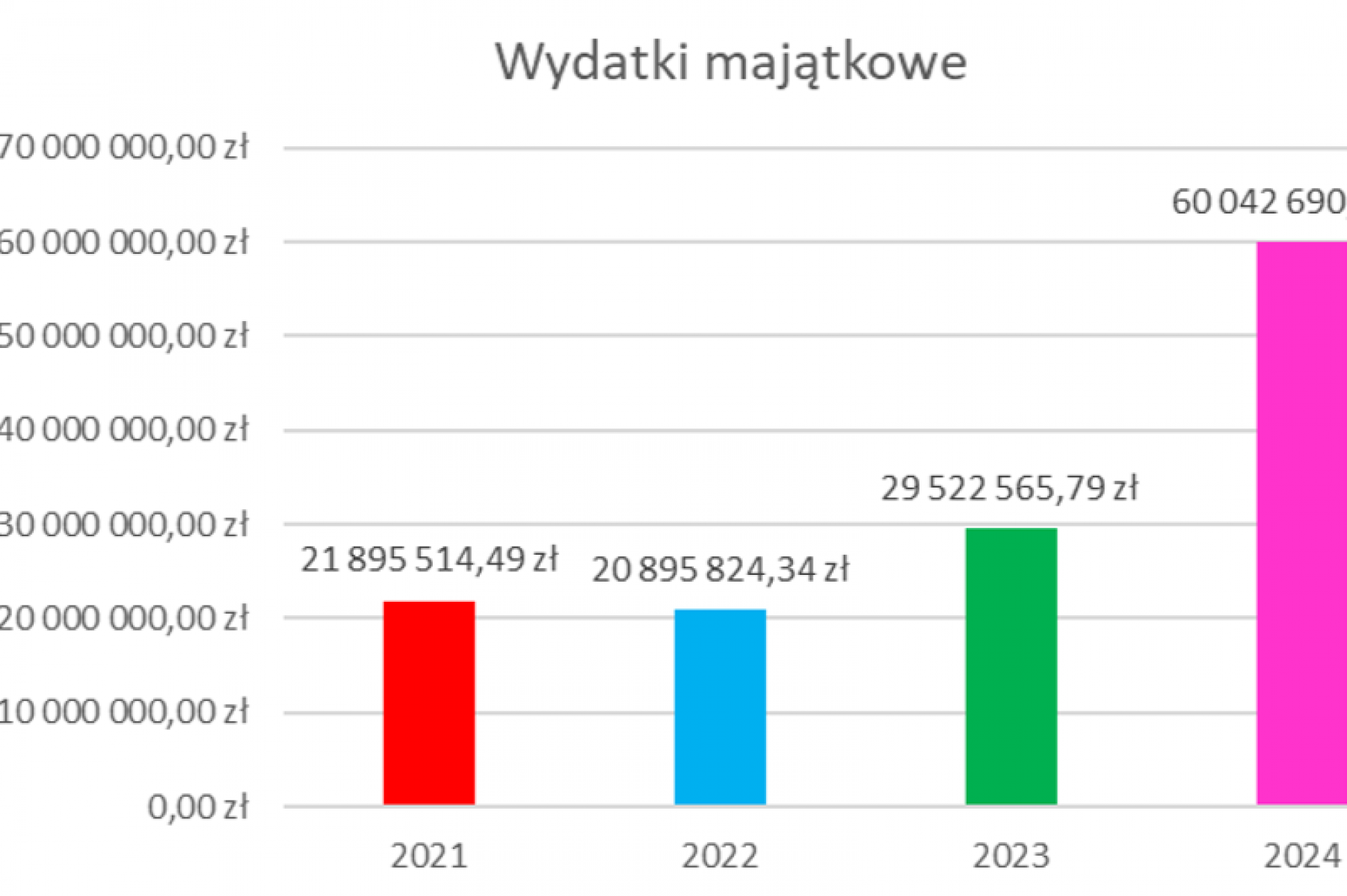 W 2024 roku wydatki majątkowe Powiatu Miechowskiego osiągnęły kwotę 60.042.690,39 zł. Dla porównania w poprzednich latach nakłady te wynosiły: