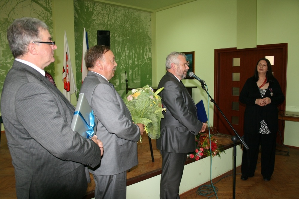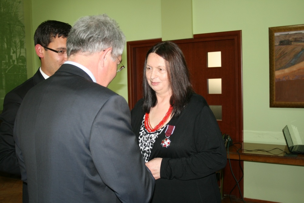 (...) jaki miał miejsce przed 25 - laty w Galerii "U Jaksy" Miechowie, usytuowanej w zabytkowych klasztornych piwnicach po miechowskich bożogrobcach. W centrum uwagi była inicjatorka i założycielka galerii - dyrektor Krystyna Olchawa, która od ponad dwóch dekad z entuzjazmem prowadzi działalność wystawienniczą, edukacyjną i promocyjną na rzecz popularyzacji sztuki "wysokich lotów" w miechowskim środowisku i poza jego granicami. W sali konferencyjnej Urzędu Gminy i Miasta w Miechowie zebranych witał burmistrz Dariusz Marczewski. Uroczyste spotkanie swoją obecnością zaszczycili m.in: ambasador Polski przy przedstawicielstwie RP w Brukseli Jerzy Dróżdż, posłowie Jarosław Gowin i Zbysław Owczarski, wojewoda małopolski Stanisław Kracik, przedstawiciel Małopolskiego Urzędu Marszałkowskiego Jarosław Kuś, rektor ASP w Krakowie Adam Wsiołkowski, przedstawiciele placówek kulturalnych z Nowego Sącza i Nowego Targu, kierownictwo powiatu miechowskiego i władze miasta. Artystyczny charakter spotkania podkreślił występ kwartetu ARCHI z Filharmonii Krakowskiej. Reminescencjami ,,o spotkaniach ze sztuką "U Jaksy", w tym dziejami samej galerii, podzielił się kustosz i historyk sztuki Witold Turdza z Muzeum Historycznego w Krakowie. W kulminacyjnym momencie uroczystości wojewoda Stanisław Kracik w imieniu Prezydenta RP odznaczył Krystynę Olchawę Srebrnym Krzyżem Zasługi za całość dokonań, które zaowocowały utworzeniem, rozwojem i prowadzeniem do dziś profesjonalnej placówki artystycznej w najbardziej na północ wysuniętej części Małopolski. Starosta Marian Gamrat gratulując z delegacją powiatu miechowskiego szefowej galerii zaszczytnego wyróżnienia, zauważył, że istotą sukcesu Krystyny Olchawy jest "doprowadzenie do skutku idei artystycznej na niełatwym rolniczym gruncie". Dziękując za przyznane odznaczenie dyrektor Galerii BWA "U Jaksy" przypomniała kilka faktów z historii tworzenia placówki, dziękowała współpracownikom, lokalnym samorządom i sponsorom za wieloletnie wsparcie oraz przybliżyła najbliższe plany działania "miechowskich Krzysztoforów". Spotkanie zakończyła projekcja filmu anonsującego twórczość rektora krakowskiej ASP. Kontynuacją święta sztuki był wernisaż wystawy rysunku i malarstwa Adama Wsiołkowskiego w podziemiach galerii oraz majówka w zabytkowym dworku Zacisze.