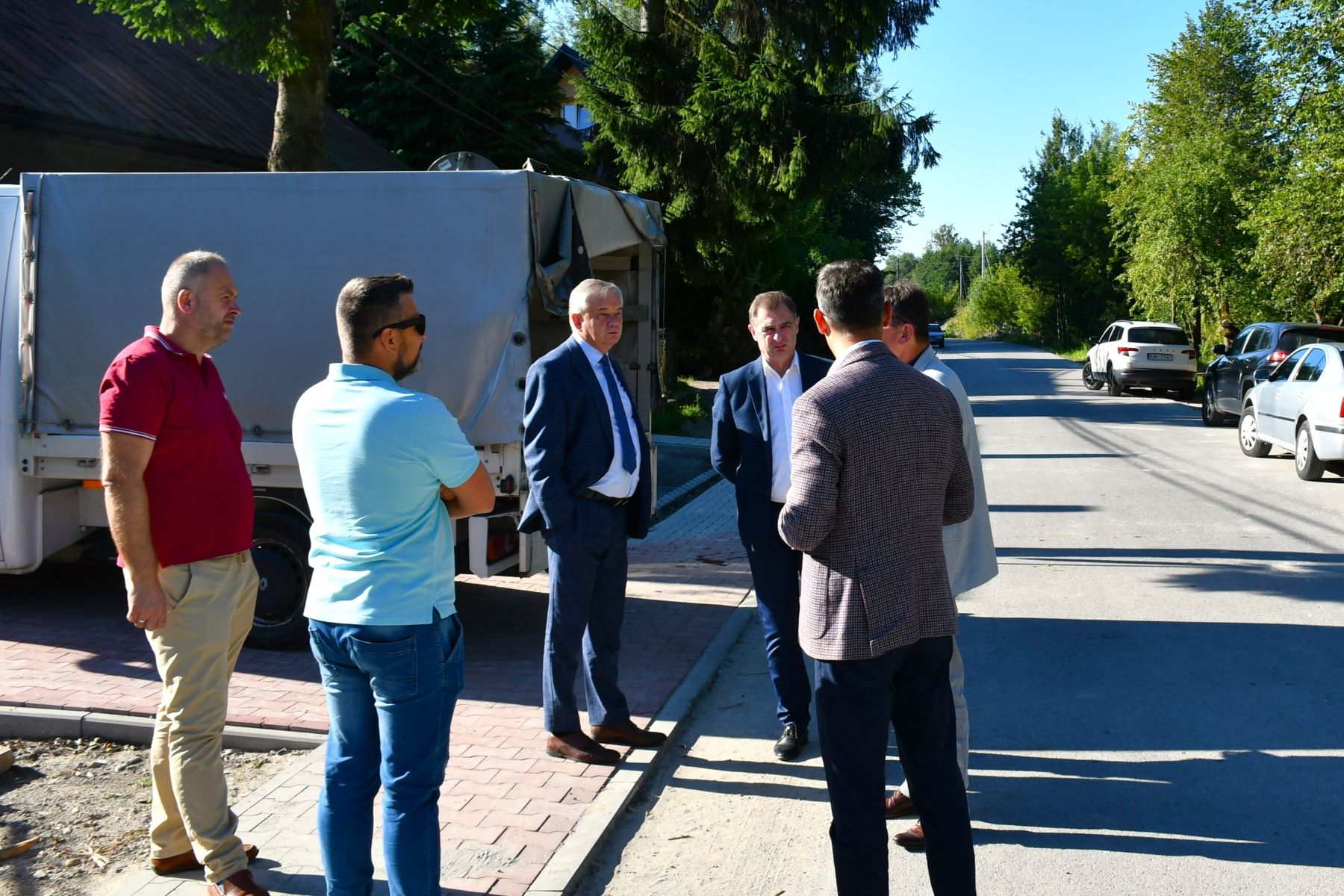 We wtorek 30 lipca Starostowie Powiatu Miechowskiego - Krzysztof Świerczek i Jerzy Pułka, Burmistrz Gminy i Miasta Miechów - Dariusz Marczewski, Dyrektor Zarządu Dróg Powiatowych w Miechowie - Krzysztof Szarek oraz Kierownik Sekcji Dróg i Mostów ZDP w Miechowie - Marcin Tompolski wizytowali prace remontowe na drodze Komorów-Kamieńczyce-Jaksice.