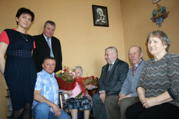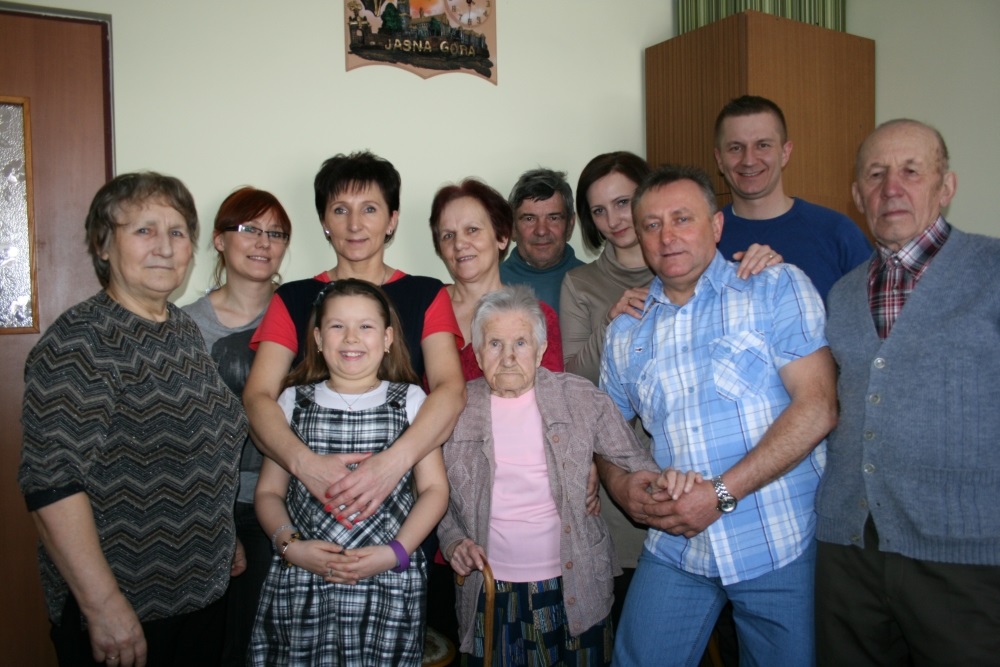 25 Marca 2013(...) Na podkreślenie zasługuje jej ciekawość świata, dobry wzrok (nie używa okularów) i słabość do kawy, bez której nadal nie może się obejść. Szefowie lokalnych samorządów, wójt gminy Słaboszów Zbigniew Kita i starosta Marian Gamrat życzyli kolejnych lat życia w zdrowiu i spokoju, u boku kochającej rodziny i współmieszkańców wsi. Samorządowcy obdarowali Dostojną Jubilatkę bukietami kwiatów i okolicznościowymi prezentami. Przekazali także Seniorce listy gratulacyjne od premiera RP Donalda Tuska i wojewody małopolskiego Jerzego Millera. – To drugi przypadek stuletniej mieszkanki w czasie mego 13 - letniego wójtowania – nie bez dumy podkreślał wójt Zbigniew Kita. Starosta Marian Gamrat zauważył: - Swoim bardzo długim życiem połączyła Pani dwa wieki, jest więc Pani dla współmieszkańców przykładem żywotności współczesnego człowieka. Zofia Błaszkiewicz całe życie związała z ziemią miechowską, a szczególnie z dwoma miejscami – Trzonowem i Wymysłowem. Doczekała się licznej rodziny, w tym siedmiu wnuków i siedmiu prawnuczek! W przedświątecznym spotkaniu Jubilatce towarzyszyła większa część rodziny. Nie zabrakło urodzinowego tortu, toastu za zdrowie Jubilatki, wielu życzeń, uścisków, wspomnień i pamiątkowych fotografii.