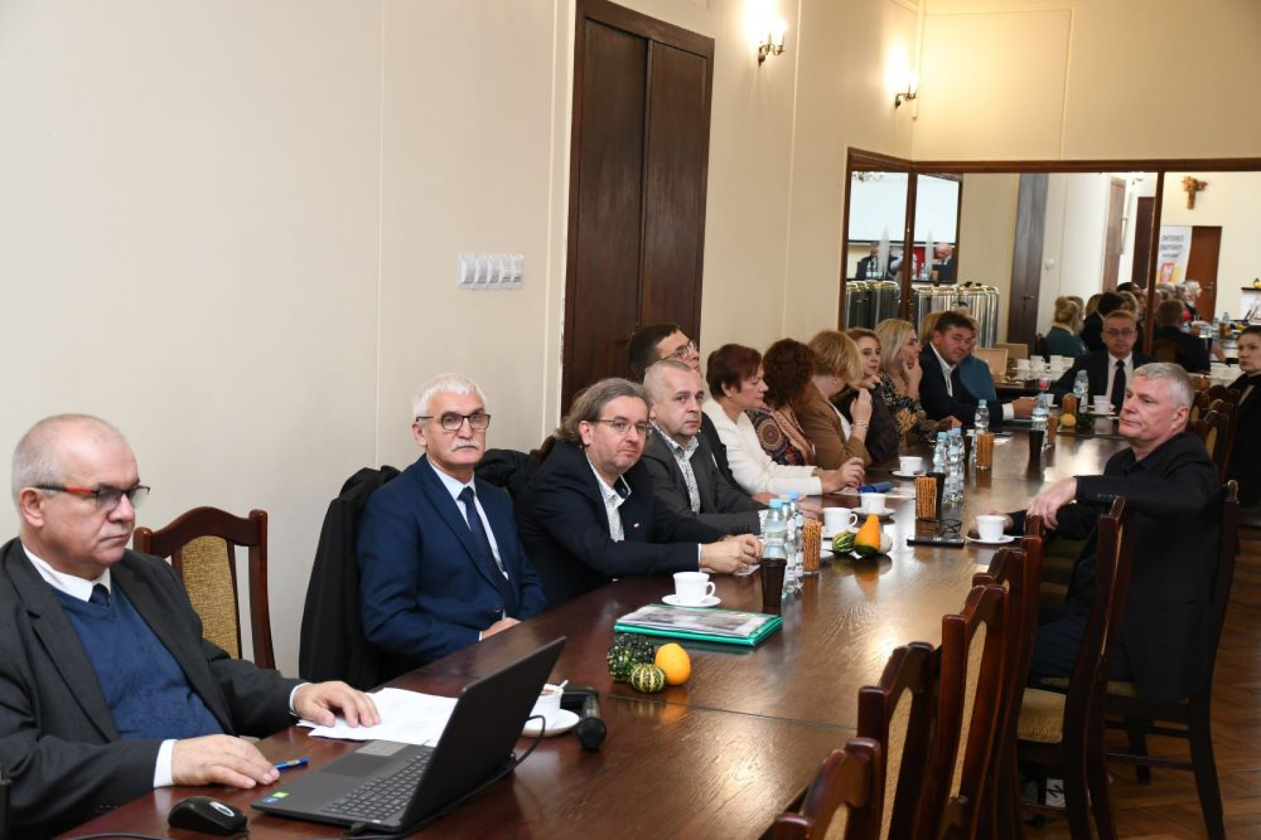 Dyrektorzy szkół, placówek oświatowych, szefowie wydziałów miechowskiego starostwa na październikowej sesji oświatowej