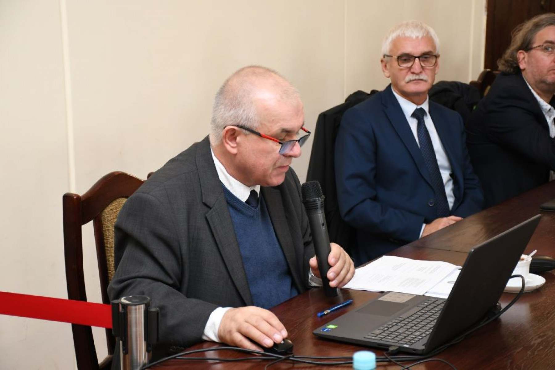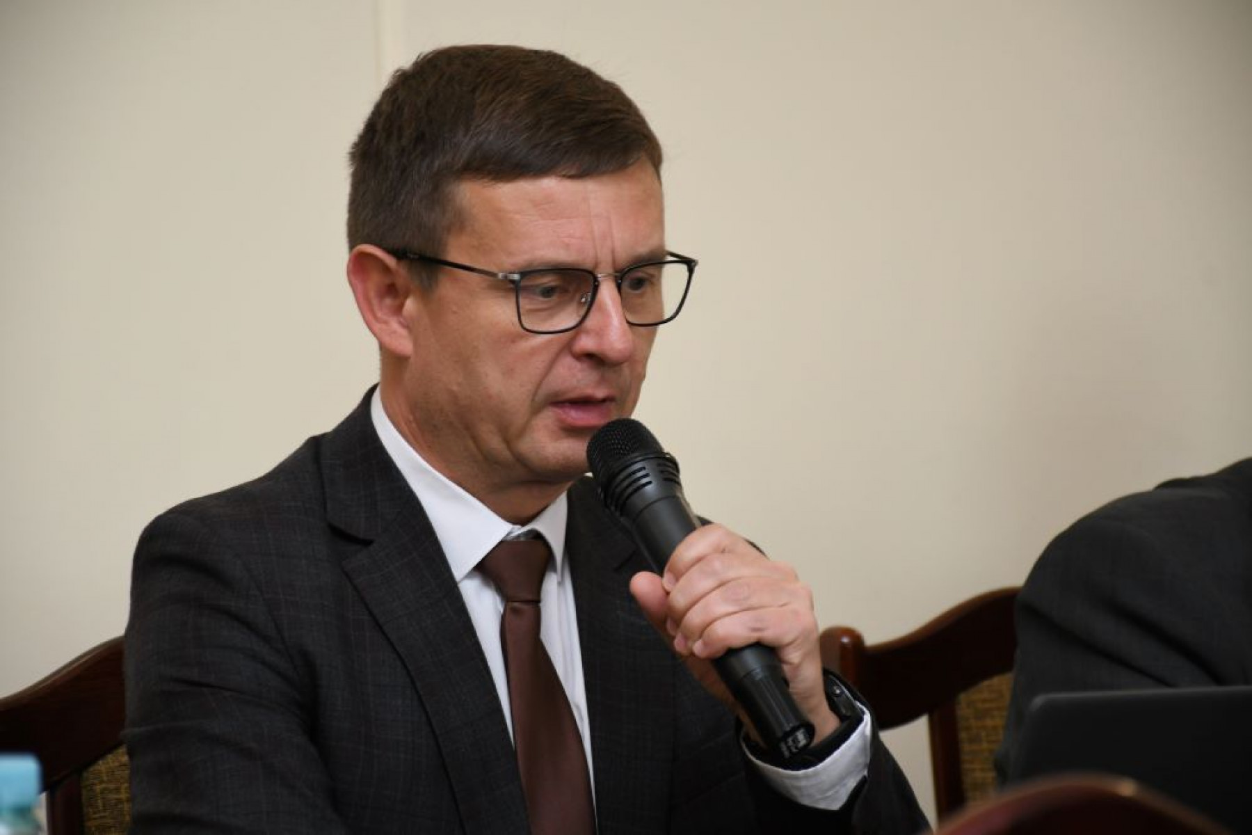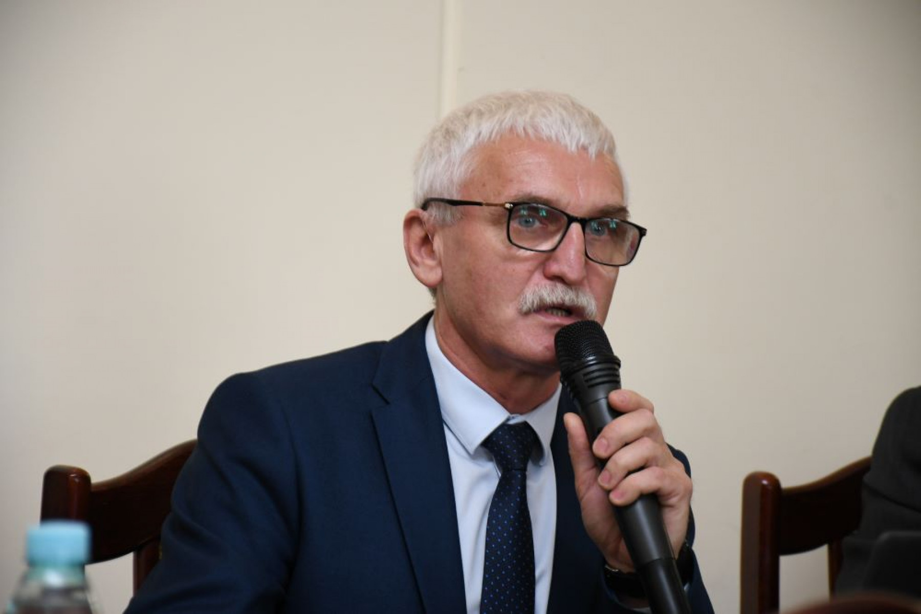 Naczelnik Leonard Mazur prezentuje informację o oświacie w Powiecie Miechowskim