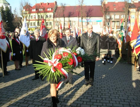 (...) patriotyzmowi i roli patrioty wygłosił ks. Prałat Jerzy Gredka. Po mszy wokół miechowskiego rynku przemaszerowała kolumna uczestników, poprzedzoną Orkiestrą Dętą ,,Sygnał" i 30 pocztami sztandarowymi samorządów, organizacji, instytucji i szkół. Wsród świętujących byli samorządowcy powiatu i gmin, kombatanci,przedstawiciele służb mundurowych, fundacji i stowarzyszeń,szefowie zakładów pracy, przedszkolaki i uczniowie oraz harcerze. Następnie uczestnicy rocznicowych obchodów, w tym delegacja powiatu miechowskiego, złożyli kwiaty pod pomnikiem z Orłem, upamiętniającym poległych w obronie wolności, Polski i ziemi miechowskiej. w latach 1794-1918. Uroczystości zakończyło okolicznościowe spotkanie w Urzędzie Gminy i Miasta w Miechowie.
