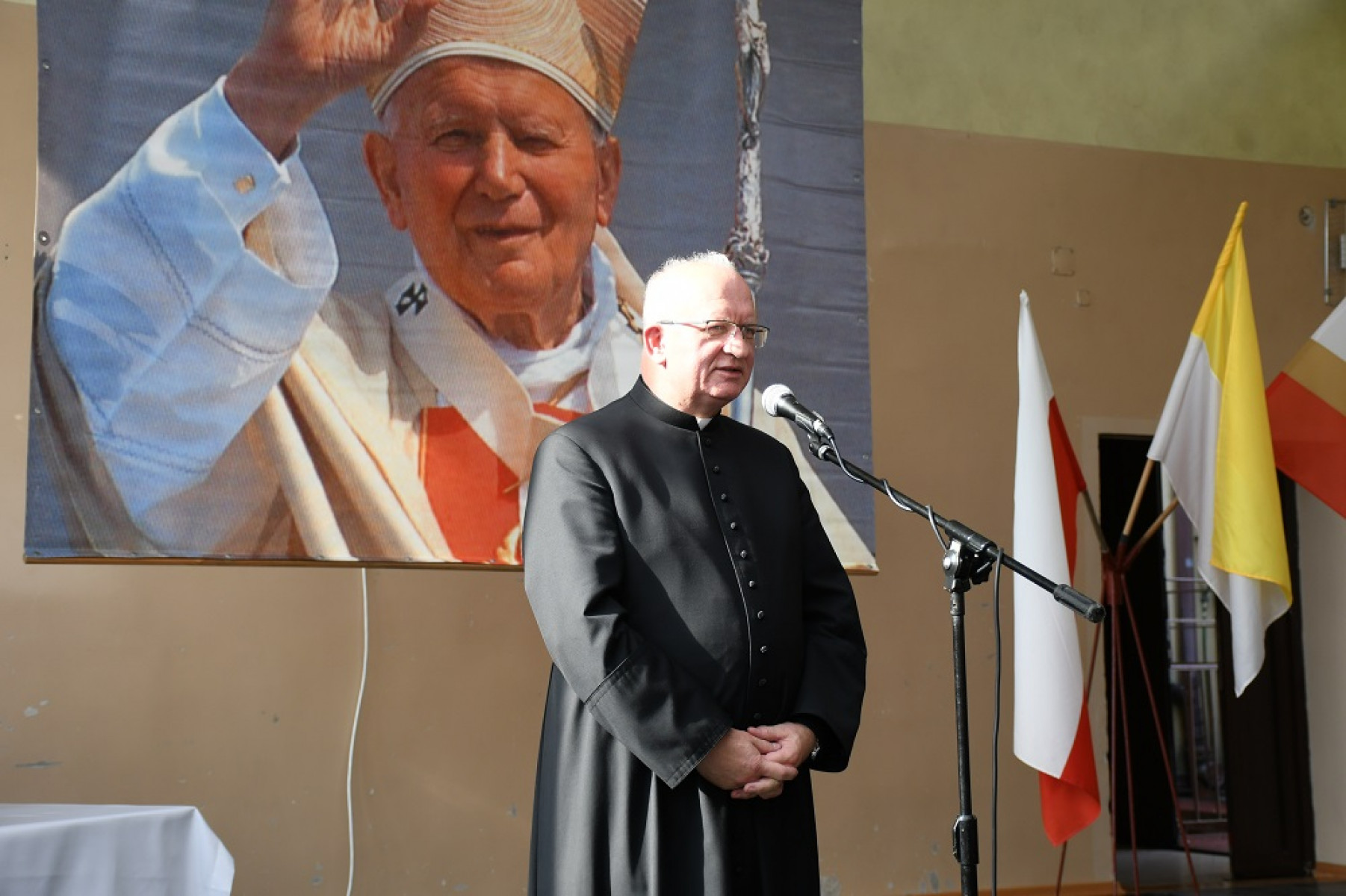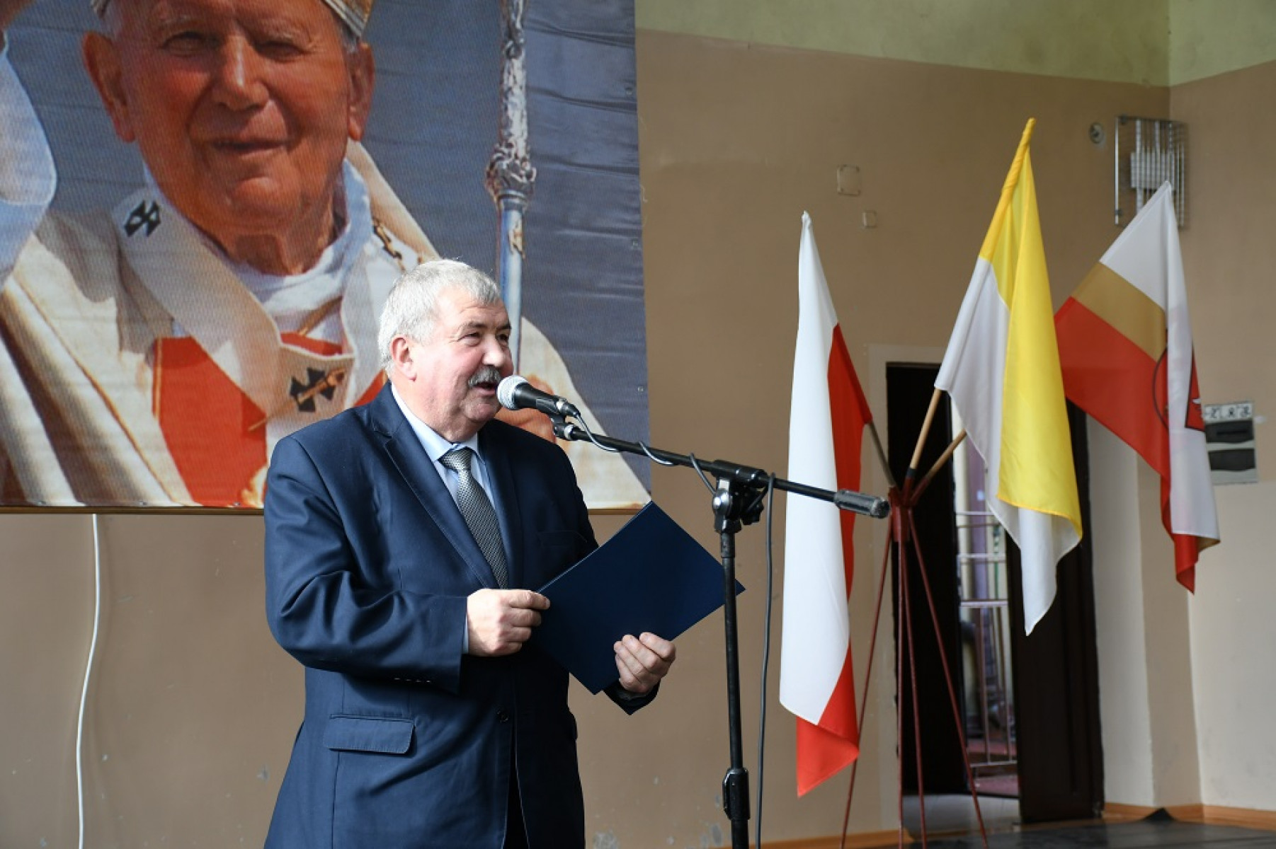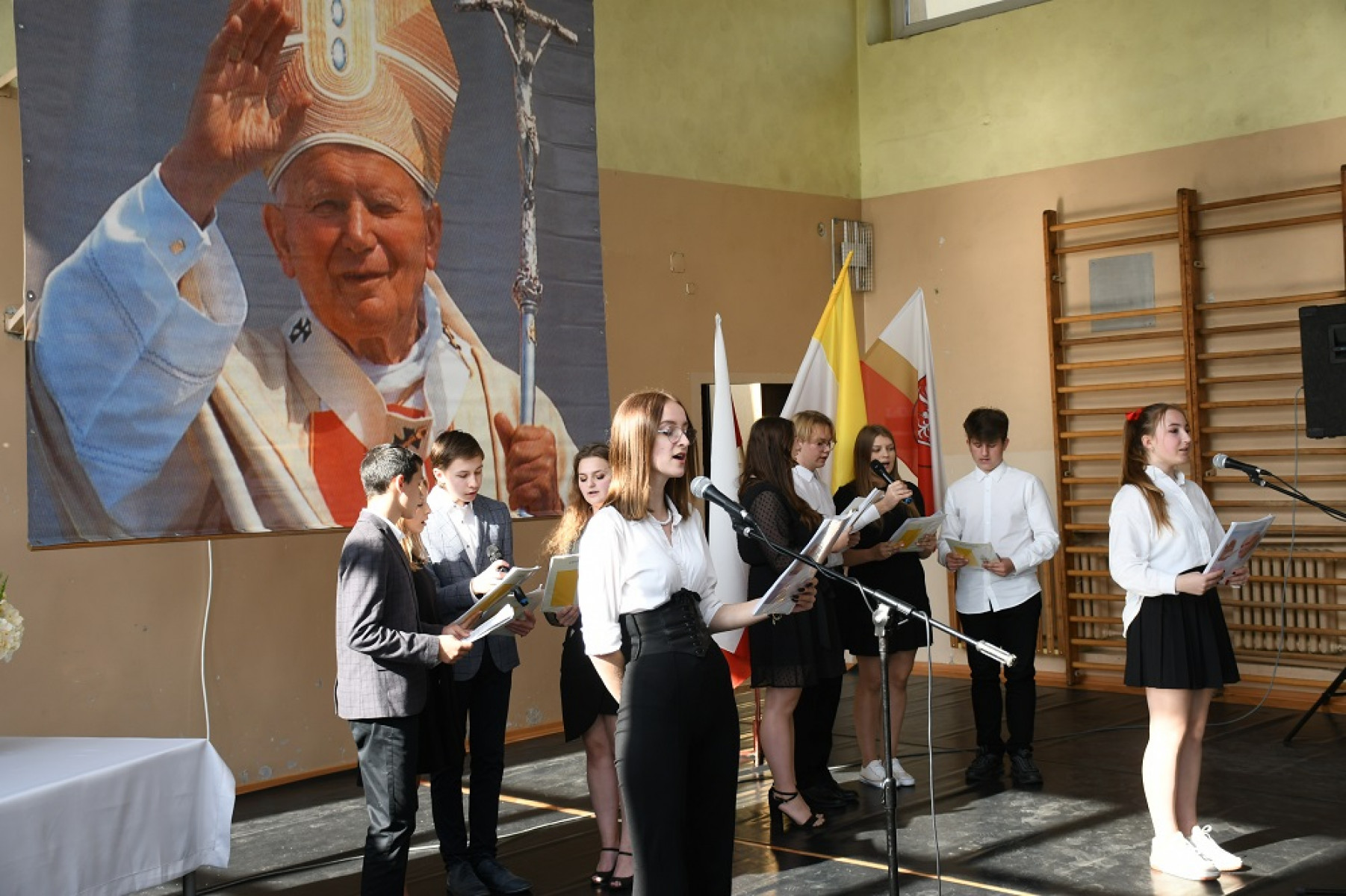 Część artystyczna przypominająca postać Jana Pawła II w ZS Nr 2 Miechów