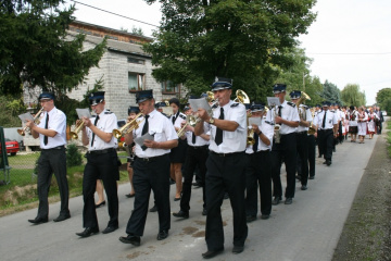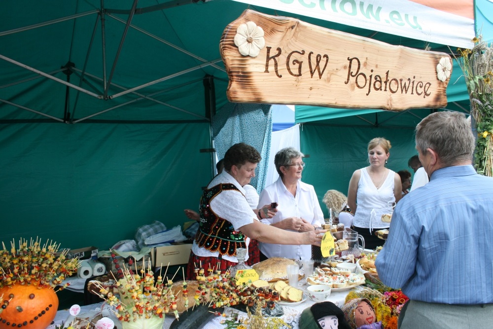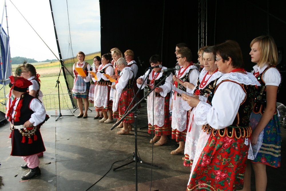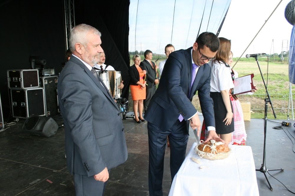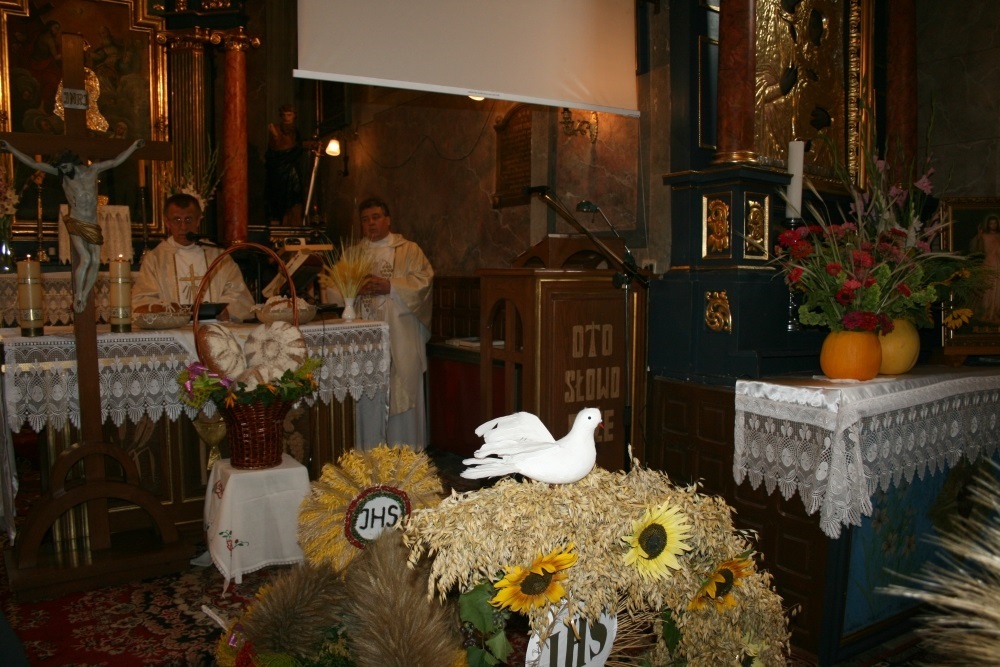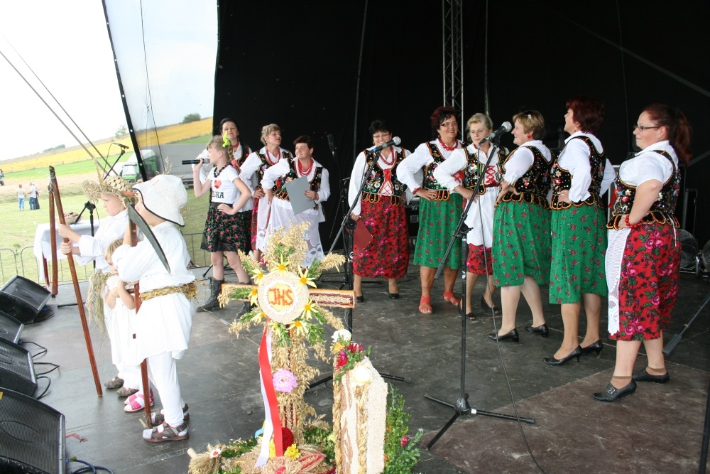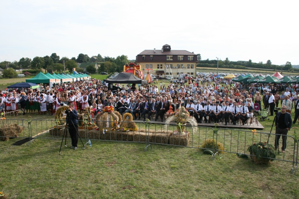 (...) Świąteczny dzień rozpoczął się od poświęcenia wieńców dożynkowych przygotowanych przez Koła Gospodyń Wiejskich ze wszystkich gmin powiatu oraz chlebów z tegorocznych zbiorów przez proboszcza ks. Wiesław Wójcika przed miejscowym kościołem. Okolicznościową homilię wygłosił ks. kan. Mirosław Kaczmarczyk z bazyliki Grobu Bożego w Miechowie, mówiąc m.in.  – Tam Ojczyzna, gdzie jest chleb.